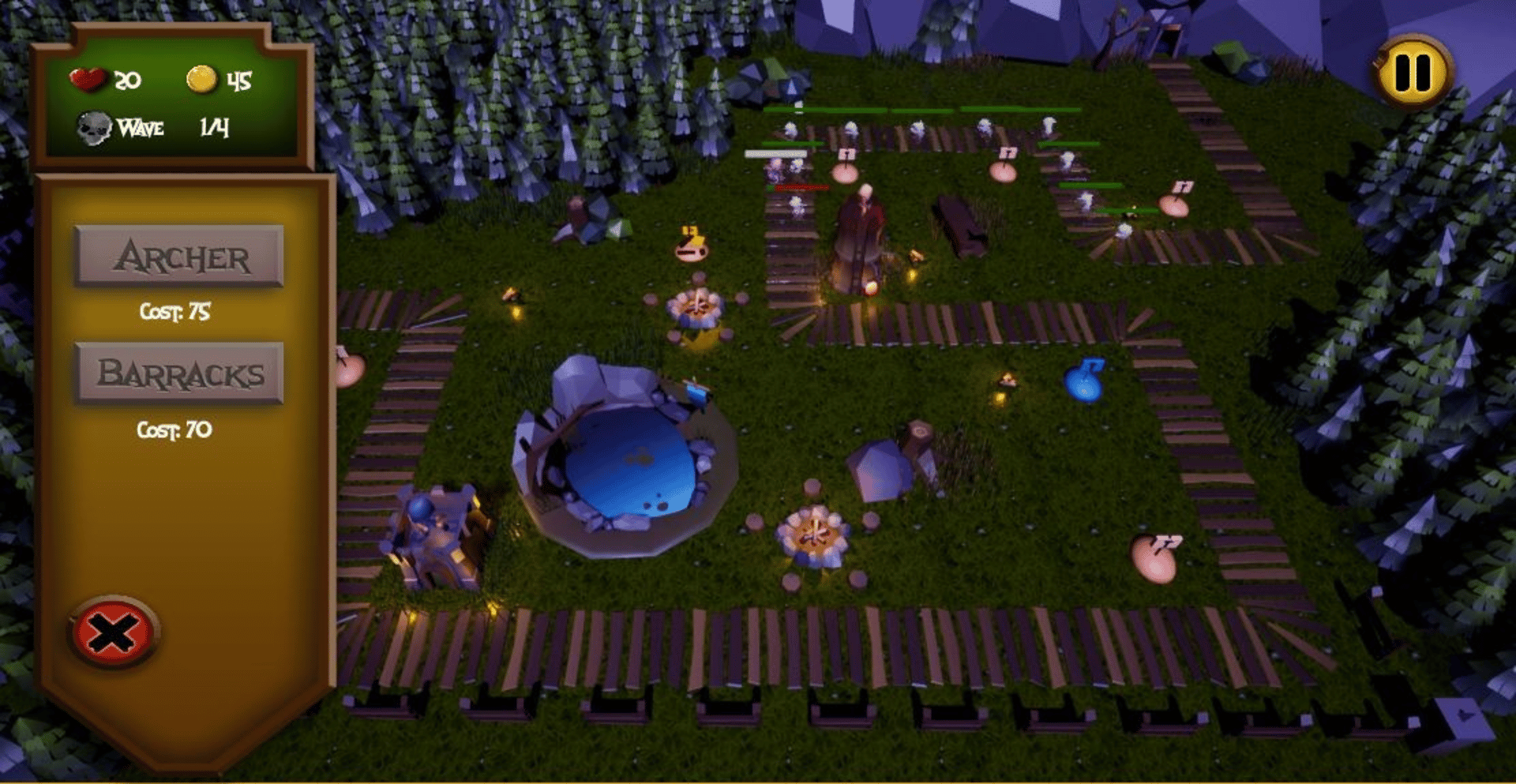 A button-based top-down tower defense game that uses multiple mechanics for the player to enhance and defeat enemies with. There are 3 different towers the player unlocks by completing levels. Each one has a different purpose, range, damage, and rate of fire as the primary mechanics.