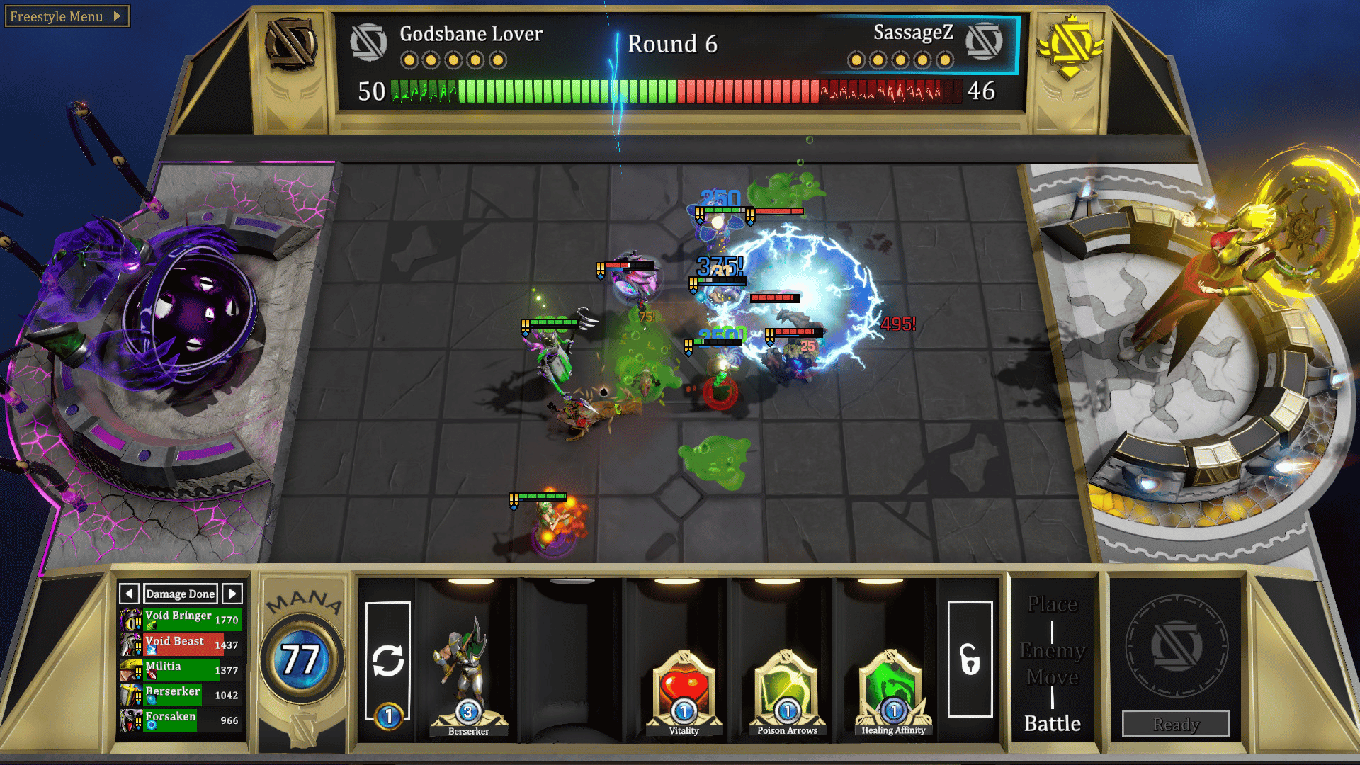 Craft explosive combos of units and powers to use in head-to-head auto battler combat against players worldwide. Outplay your opponent with strategic maneuvers and watch the battle unfold on a tabletop arena. Win matches to climb the ranks and become Godlike in this lunchtime eSport!
