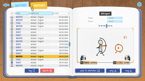 Draw & Guess is a casual drawing game for 4-16 people! Each player receives a word and draws it. The next player guesses the word behind the drawing. Then another one draws it again and so on! If the first word is correctly guessed by the last player, that's a trophy!