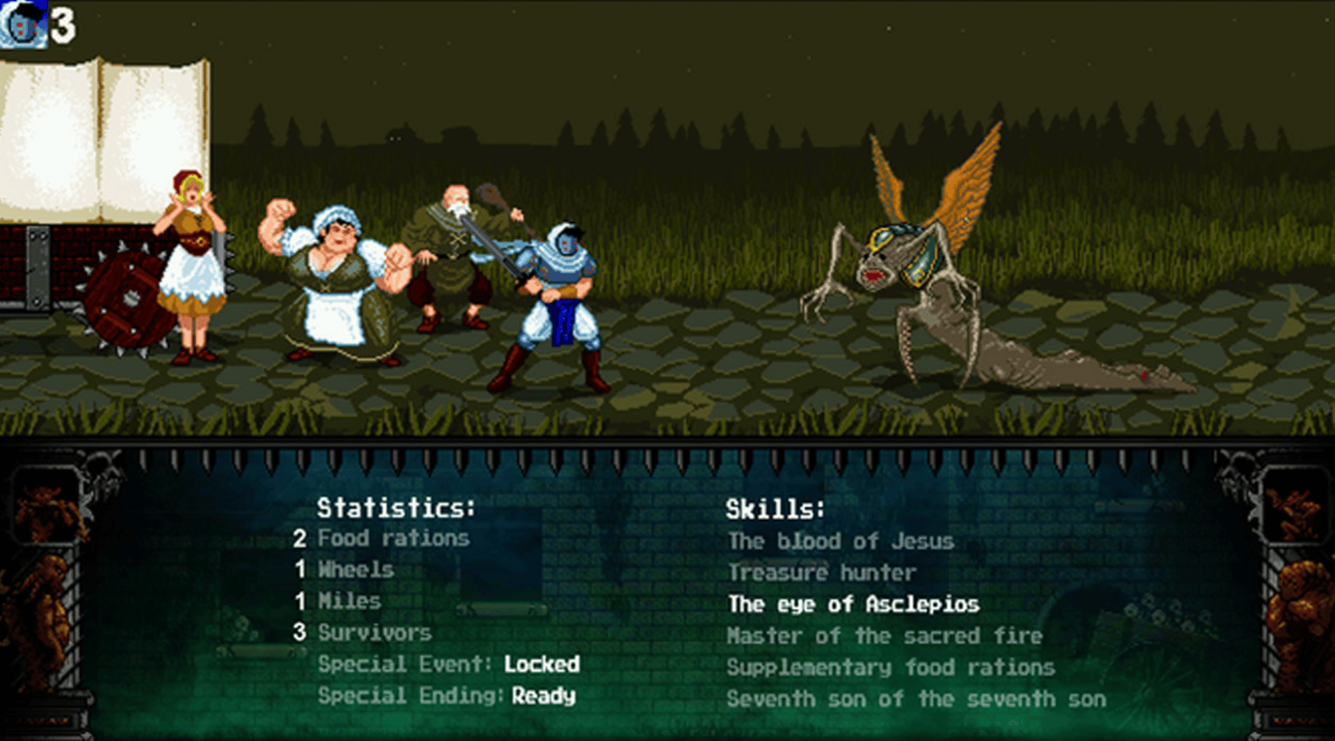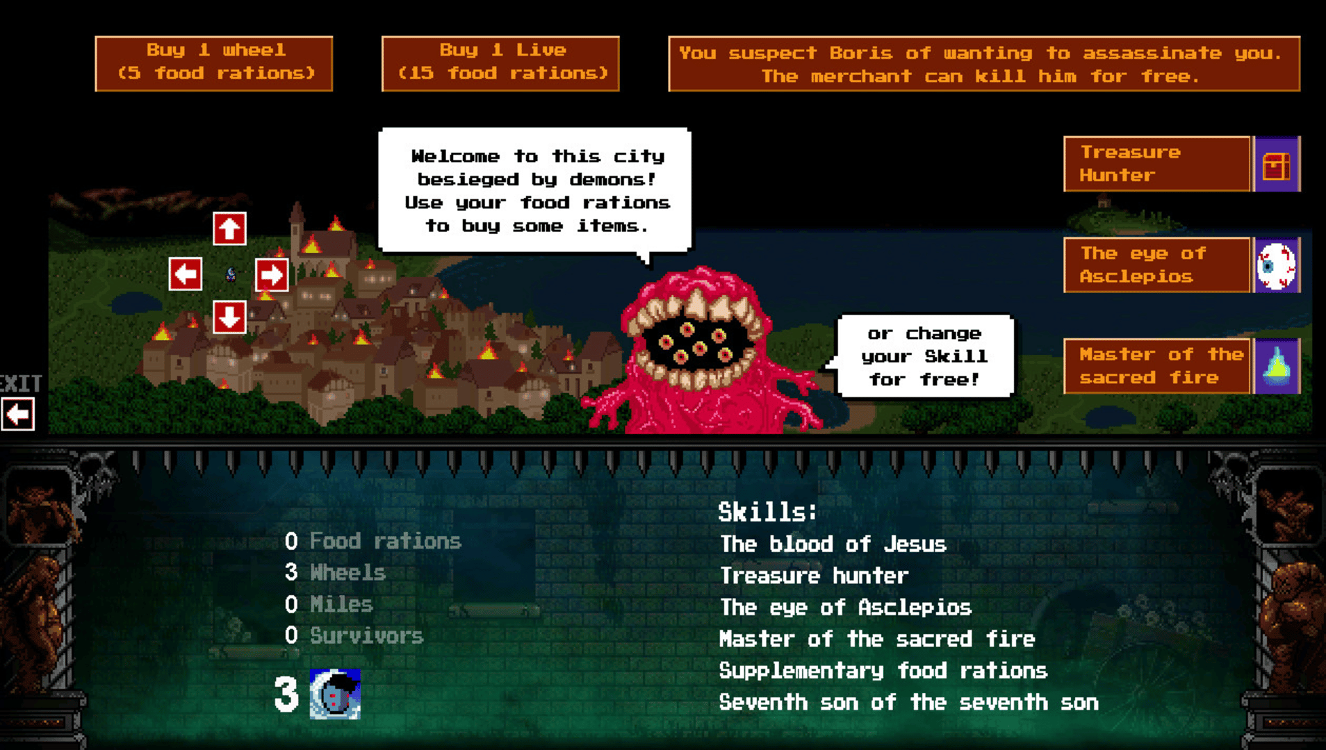 Inspirated by the Oregon trail, Across the demon realm is a brutal and gory adventure with random events.