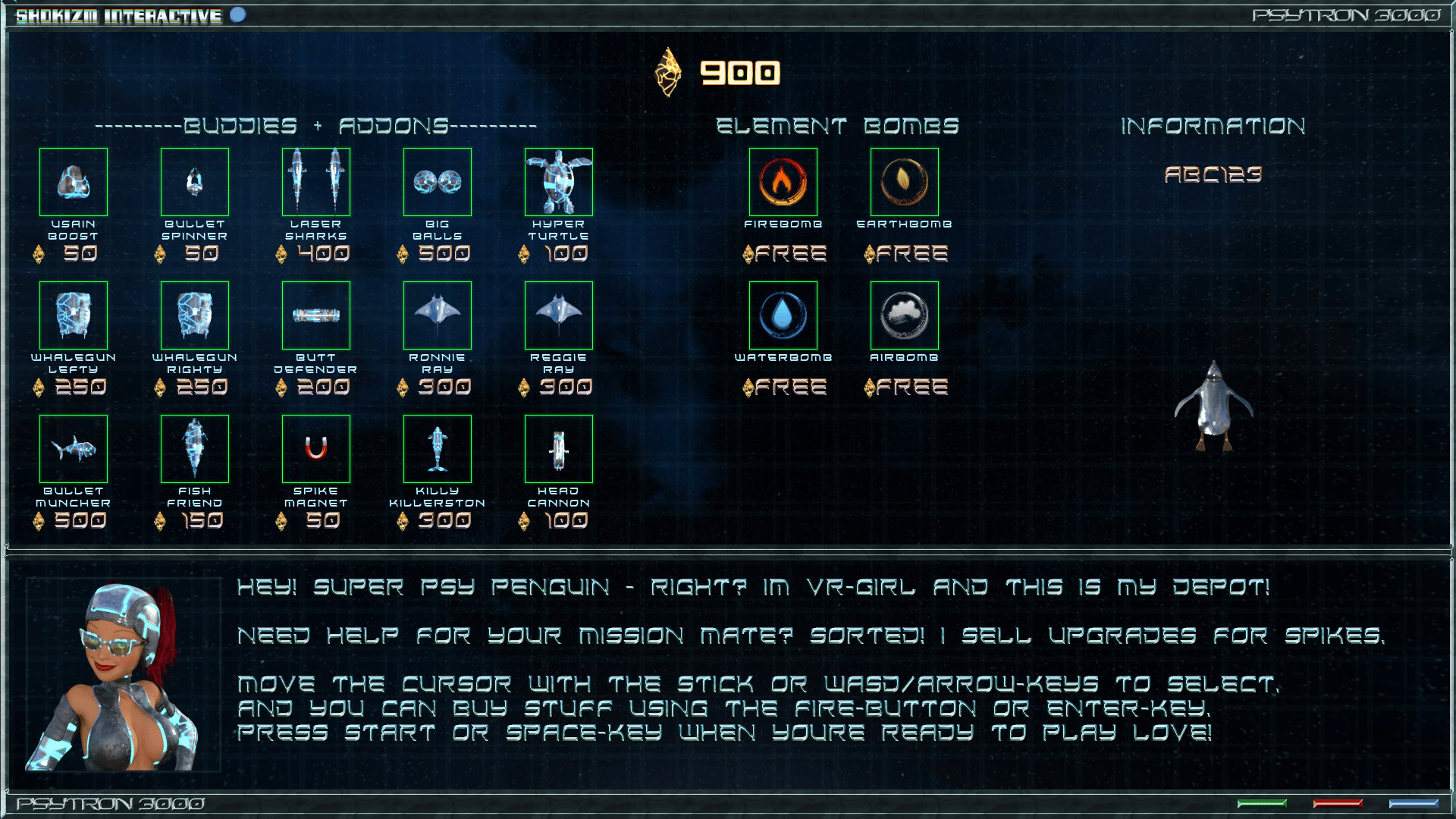 Super Psy Penguin is a Cyber Penguin Hero Simulator in which you play a realistic Cyber Penguin, giving you the power to save the galaxy! The game is inspired by Parodius and Xenon-II and many other Shmups from our childhoods.