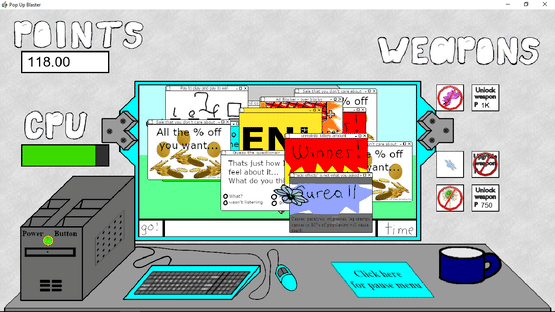 Pop up Blaster is a game that allows you to shoot popups with guns, and lob grenades and dynamite at them as well. If you do not like guns, you can shoot popups with flowers instead. If you do not like the realistic sounds, you can change them as well. All of the settings can be saved.