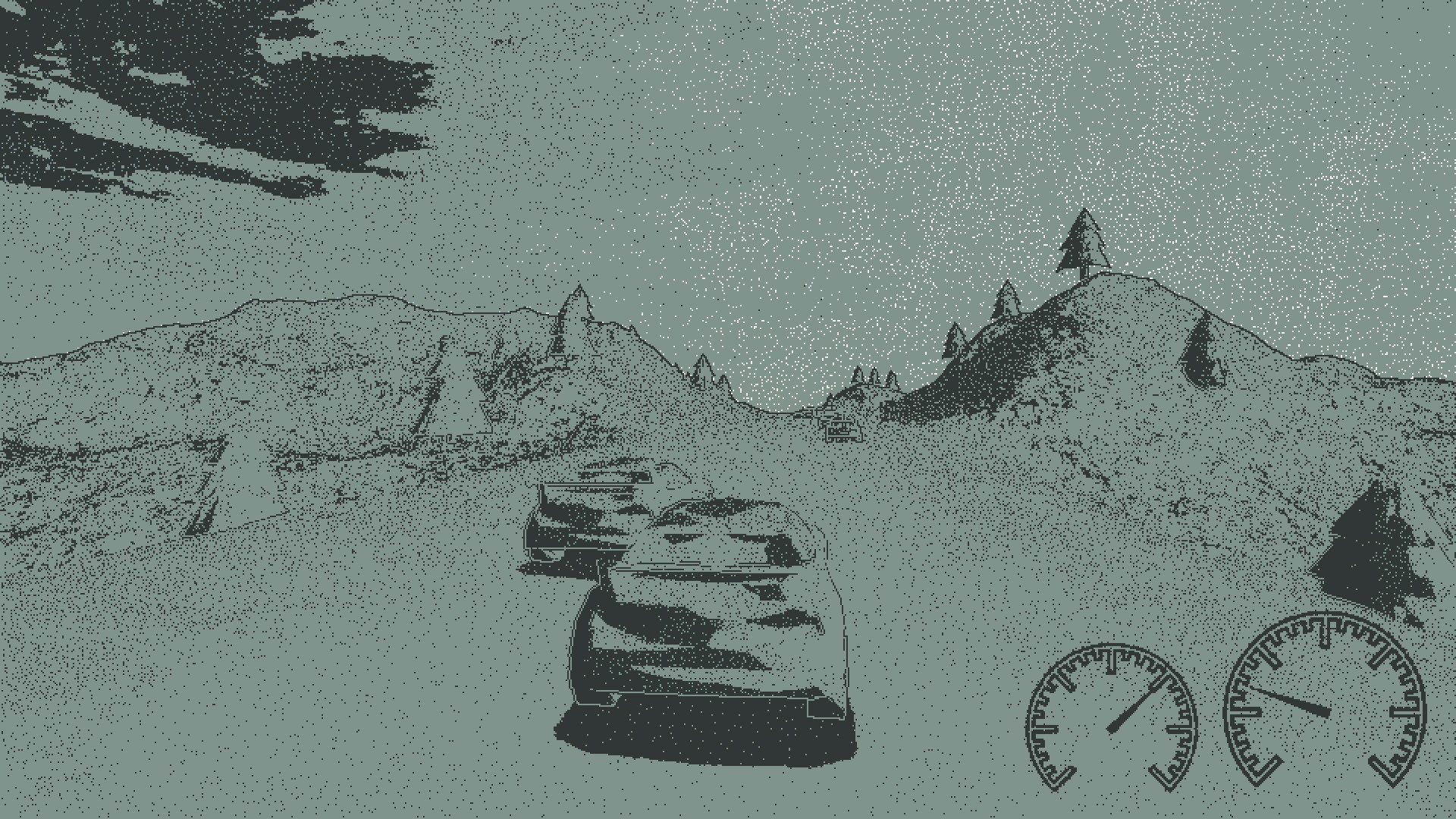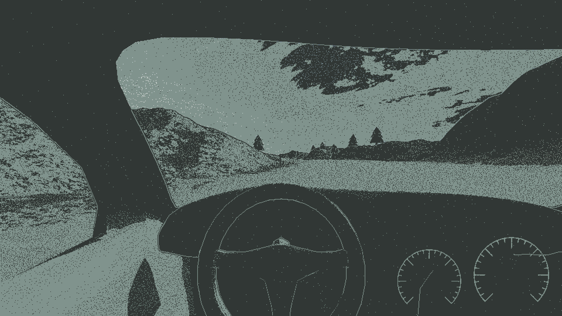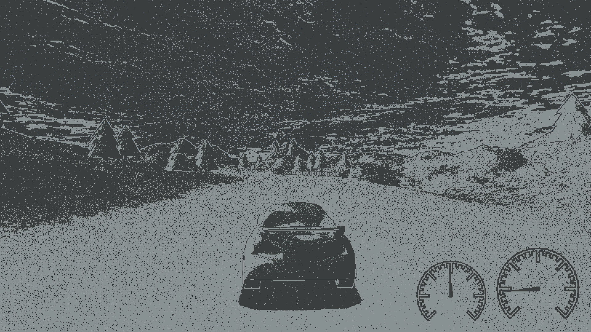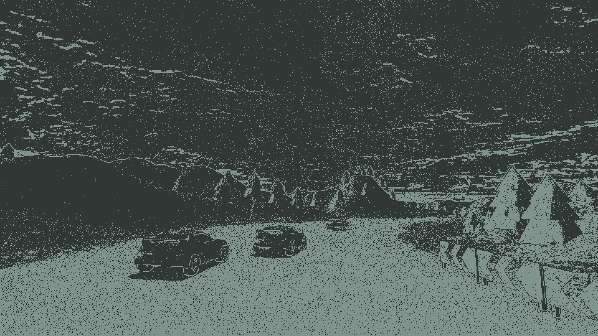 Indie racing features on-the-fly generated challenges, fake car physics for fun casual playing and custom 1-bit 3D pixel-perfect dithering visual style.