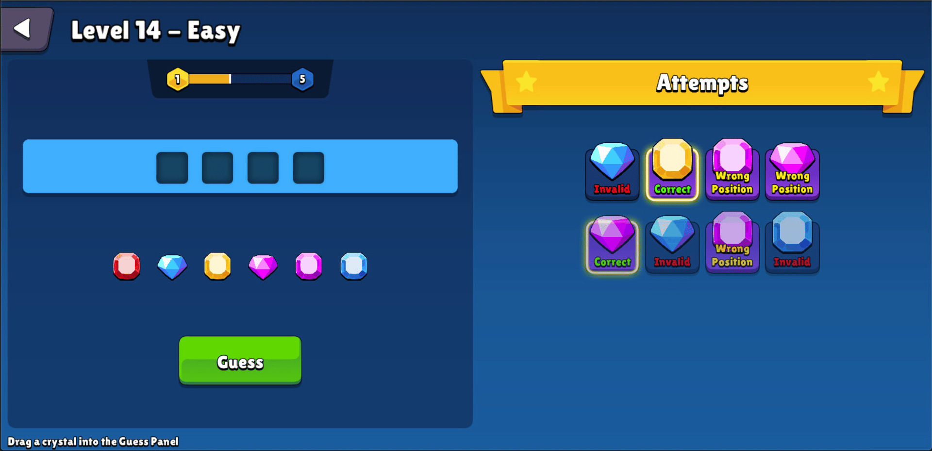 Challenge your mind with this amazing puzzles! Try to find the Crystal Sequence to advance to the next levels.