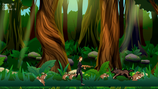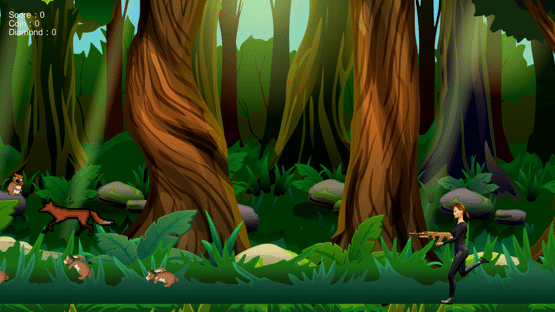 Hunter 1 game is a shooting game.When the female hunter hits the rabbit and fox in the deep forest gets some points. When the score reaches a certain value, the game will reward the player with virtual gold coins and diamonds.Players press the left mouse key to let female hunters shoot.