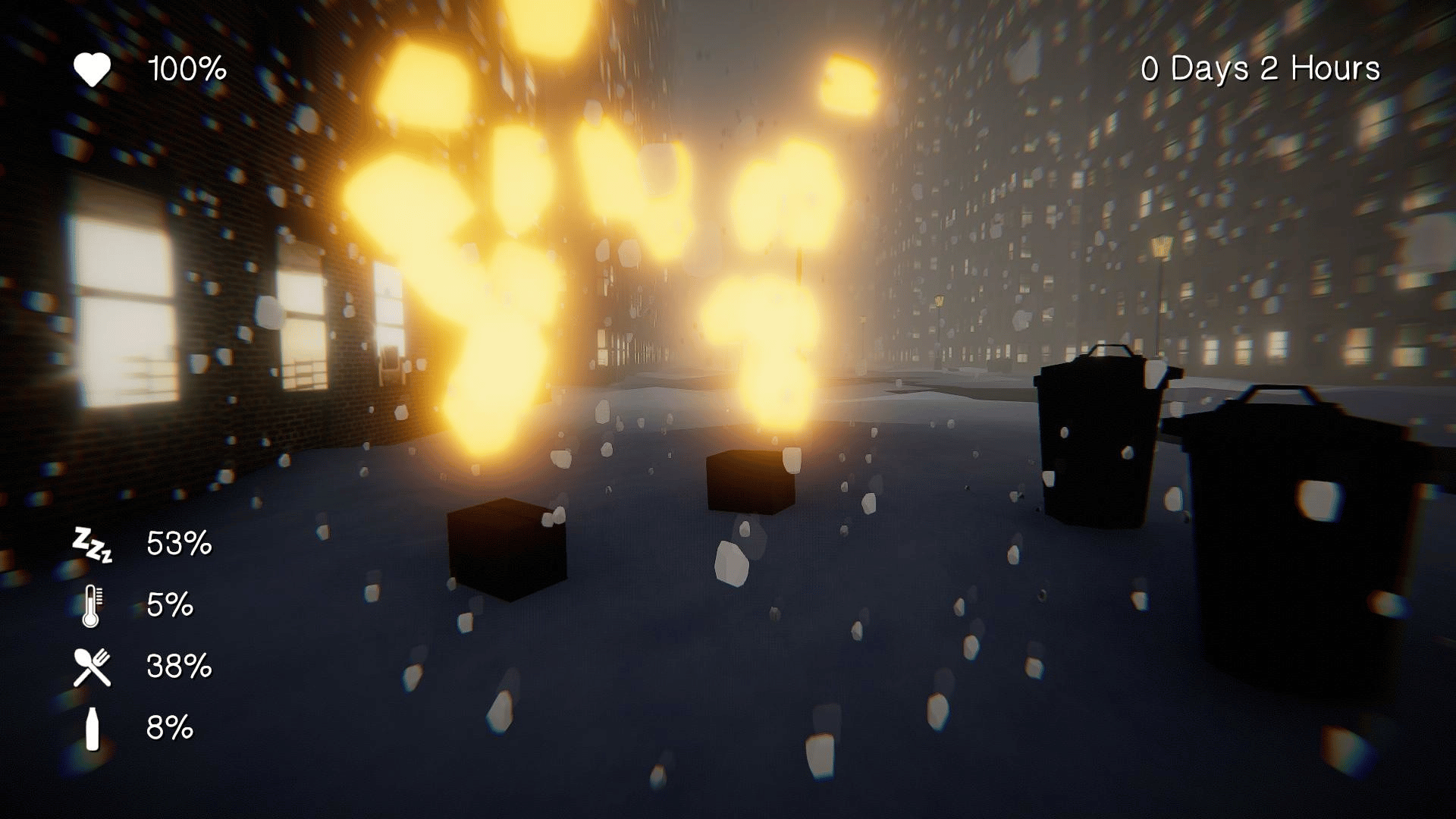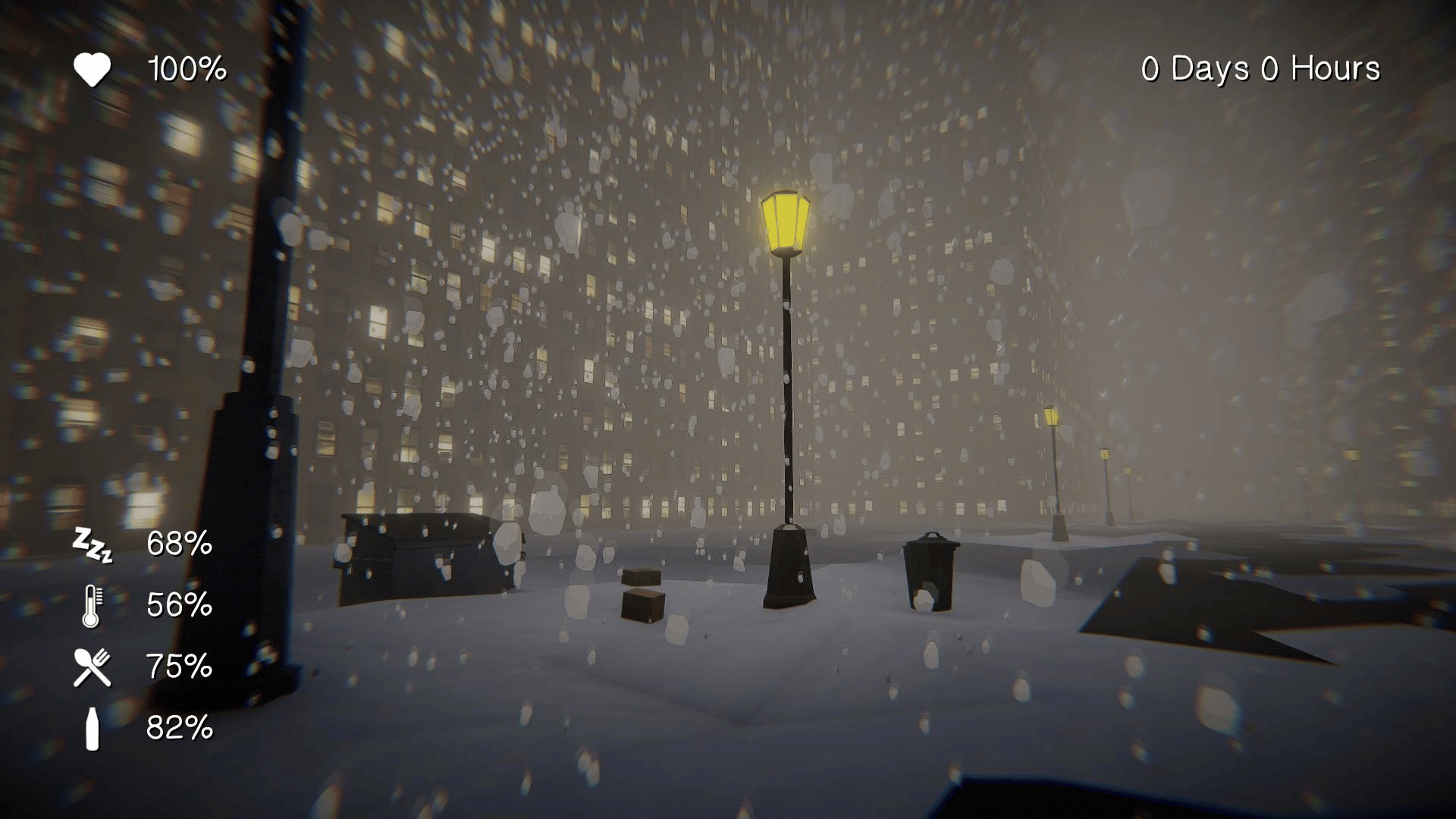 Cold Wind is a first-person game where you are going to experience yourself what it feels like to be homeless. You will be exploring a large winter city looking for food, saving yourself from cold and wind at a fire.