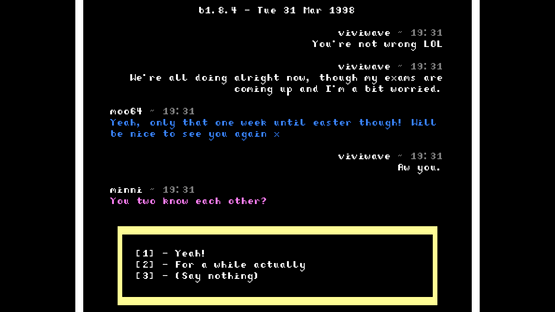 It's 1999 and your friend sends you a floppy disk, titled "RemBo". It turns out to be the installer for an old BBS service, filled with both strangers and a familiar face. How are you going to use it?