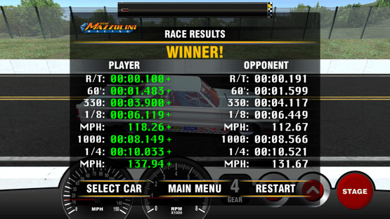 Game is based on timing. As simple to play as holding the STAGE button until the light is green and releasing to go. You can then try to find the best shift points with a four speed transmission and try to improve your reaction time and try to break a record to get on the leader board.