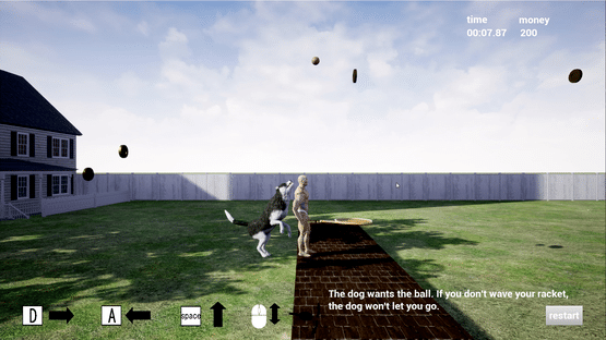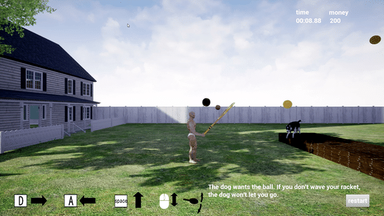 Be careful! The game may be strongly condemned by dog lovers!Because if you don't play well, the cute dog in the game will die in front of you.Use the mouse to control the pitch of the racket.Waving the racket to control the ball is the trick of this game.