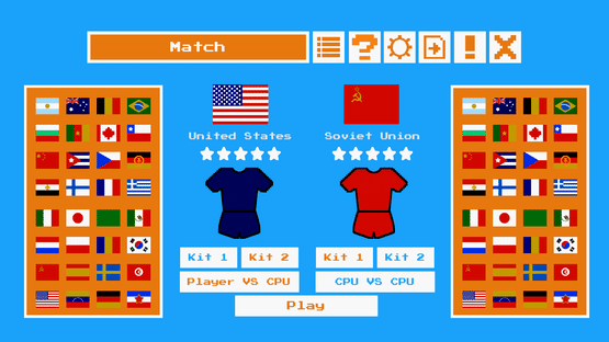 Welcome back to the 80s and this is 80s Volleyball a game based on 8bits 80s volleyball videogames, choose between 32 80s teams, compete in 8 80s tournaments or play in Season mode where you start at 1977 and try to qualify to major tournaments until the year of 1988.