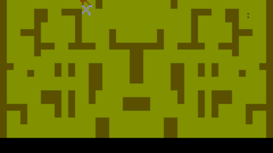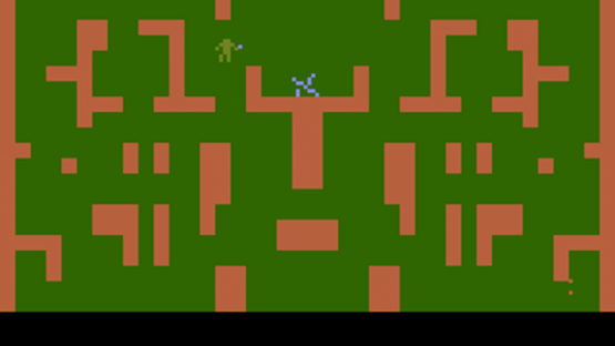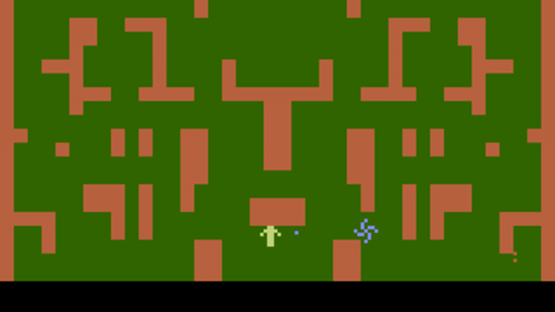 Wizard was to be the last of Atari's 2600 games, but went unreleased in favor of the new 5200 games. Chris Crawford puts it this way: "Wizard was spec'd as a 2K game, but just four months later, when it was ready, the marketing people had decided that everything should be 4K, so they asked me if I could expand it to 4K. To be honest, I really didn't want to work on the 2600 -- I was eager to get going on the 800. So I told them that you don't just expand a 2K game to 4K: you start from scratch and design it for 4K from the ground up. That was true, and marketing lost interest, so I got to move to the 800." Since Wizard was never advertised in any Atari catalogs and it was never assigned a part number, most people don't even know if its existence. Wizard can best be described as a cross between Berzerk and Wizard of Wor. You control a wizard (at least I think he's a wizard), who must attempt to destroy the swirling star shaped creature. The board layout is a giant maze, which makes it hard to run from the creature and to get a clean shot off. Unfortunately the creature can move through the maze walls, but thankfully it can't shoot through them. Once you take a shot you'll notice that your wizard dims a bit, this means you are recharging, and cannot shoot. Once your wizard is done recharging he will light back up again, and you can take another shot. You don't have to worry about aiming you shots, as you will automatically shoot in the direction of the creature. This makes it easy to run away but still take shots at the creature.