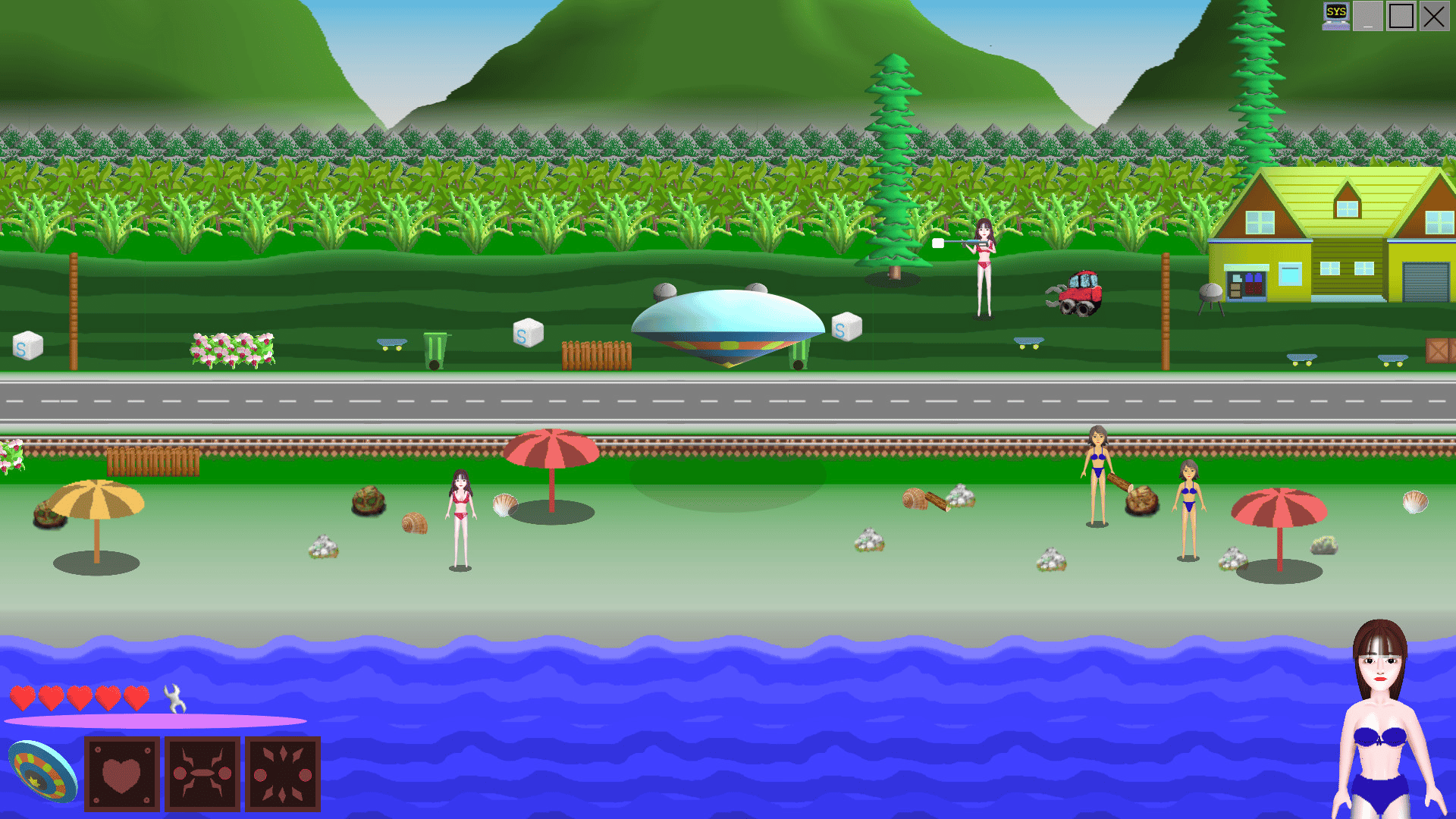 Act as an alien driving a UFO and collect materials to upgrade the spacecraft. Kidnap bikini girls, extract purple energy, and study the function of purple energy. Avoid human attacks, strengthen the defense of spacecraft and alien technology.