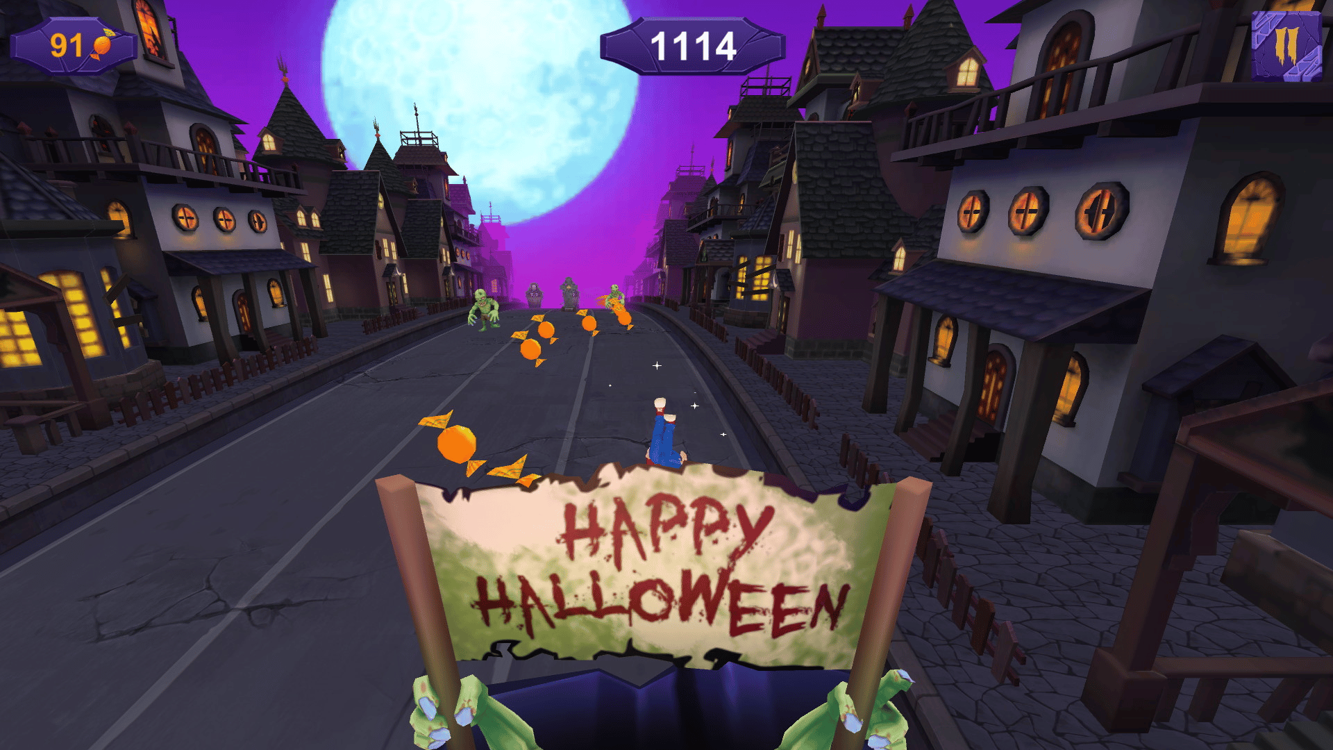 This is an arcade runner game. Choose your teenage character and run through the spooky graveyard streets in a Halloween theme.