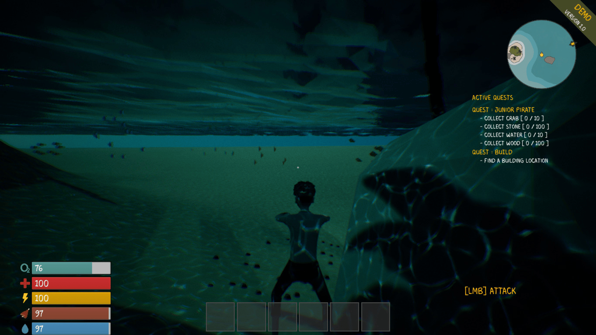 imagine you wake up in a sea world, and you have to become a pirate, so if you want to survive, you should gather all materials needed to build your own ship to travel the world and To return to the real world,By finding the lost treasure.