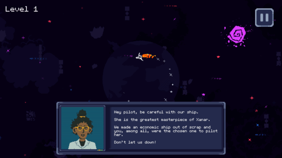 Fly a spaceship made of scrap through obstacles in outer space - using only one button! ONE BUTTON MECHANIC Maneuver the spaceship through different zones and obstacles - like asteroids, laser beams, and more - with only one button! ART STYLE Fantastic pixel art visuals, which include explosion effects, delicate clouds and enchanting constellations. EXPLORE NEW SYSTEMS Pass through portals with your spaceship, reach new systems, and discover new adventures! ENVIRONMENT MECHANICS Laser beams, alien portals, and slow zones… Which of these will seal your fate?