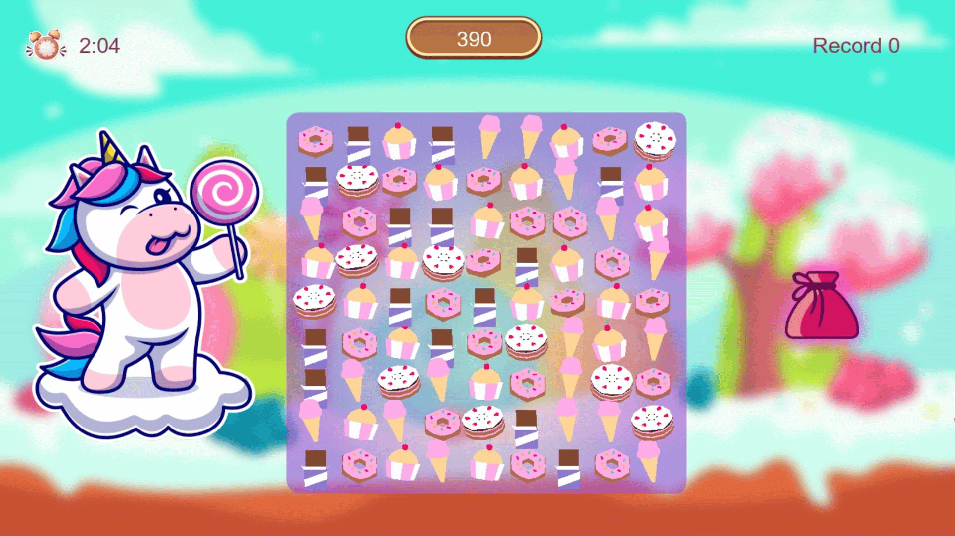 Unicorn and Sweets 2 is a match 3 category game made in combined 2D and 3D graphics.