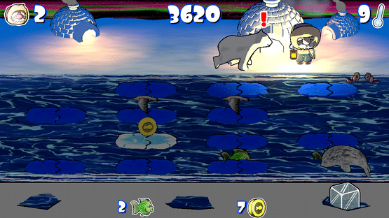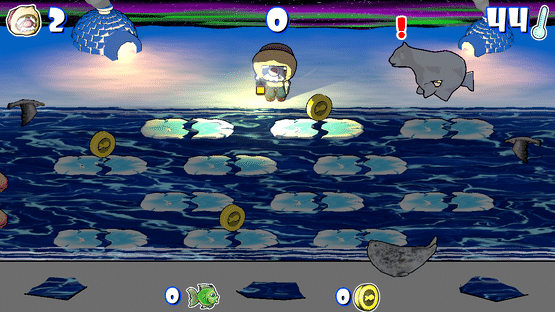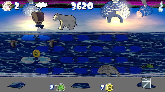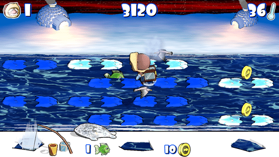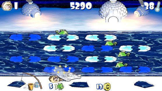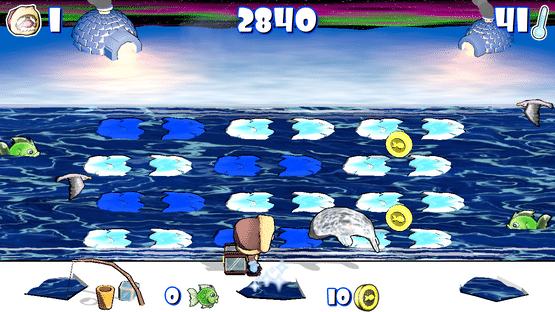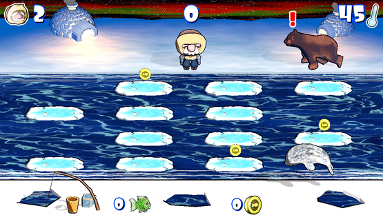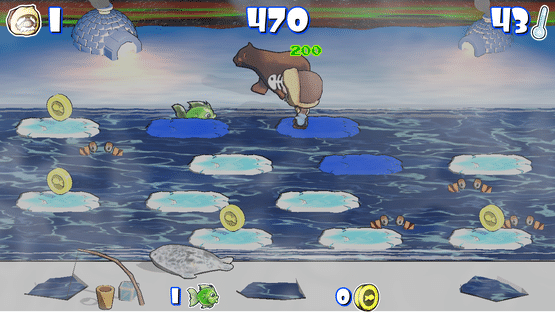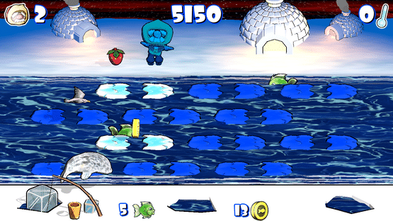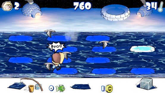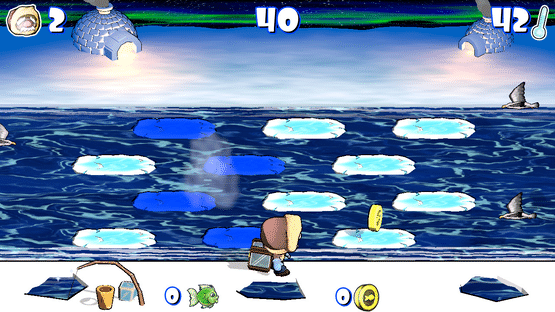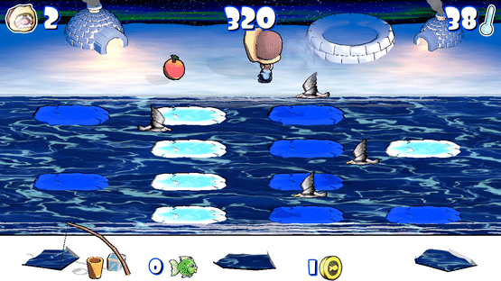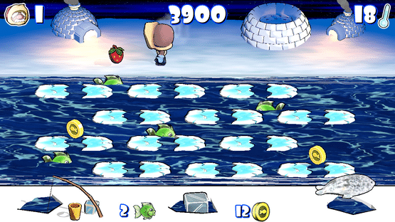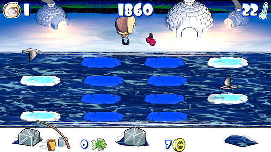 Jump from block of ice to block of ice and build your warm igloo before the temperature drops below freezing!
