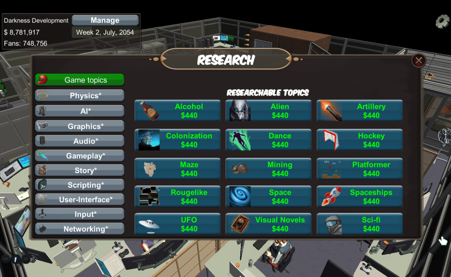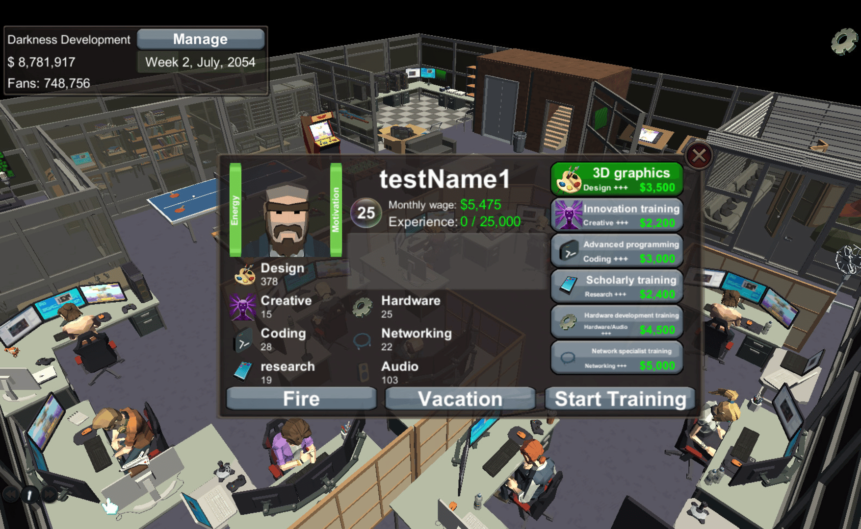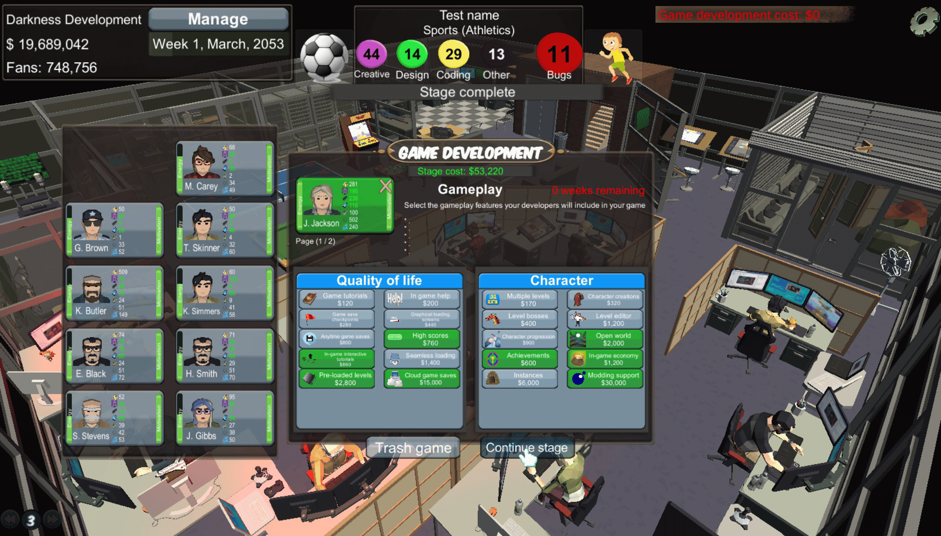 An in depth game development simulation game