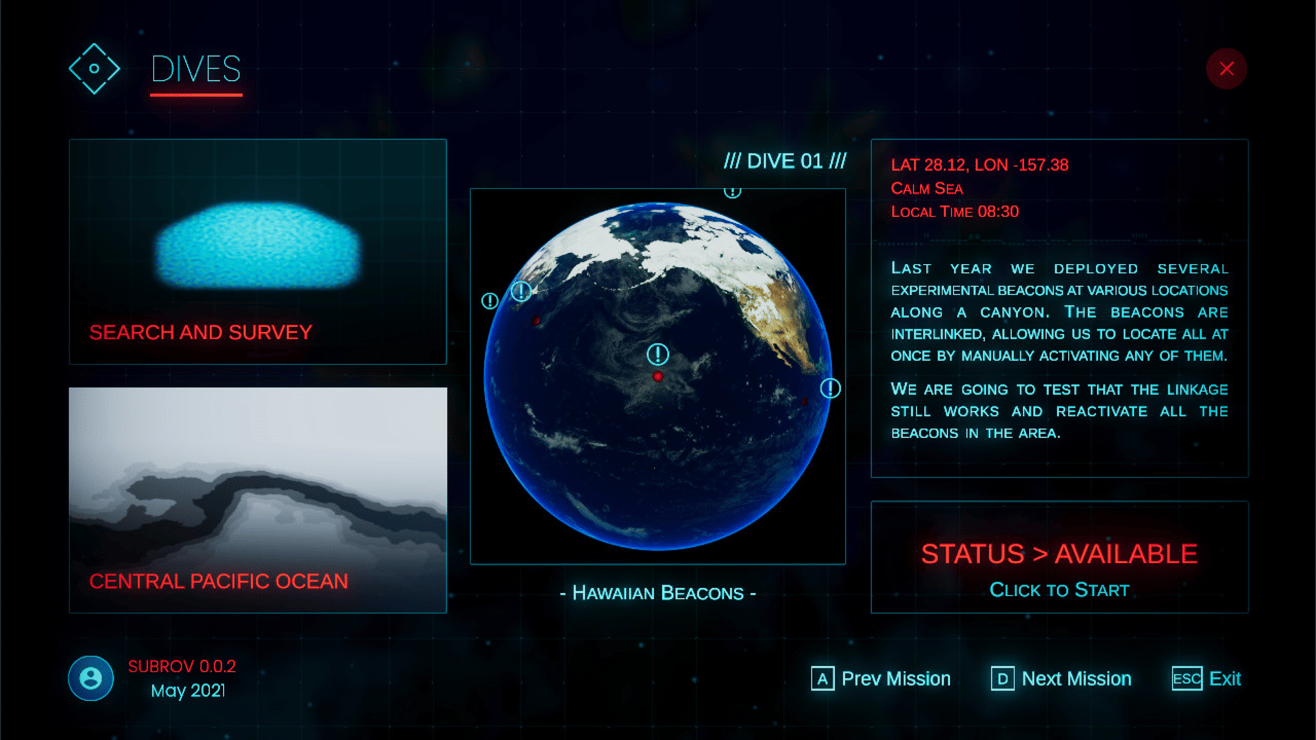 Pilot a Remotely Operated submarine and explore the oceans. Chart unknown regions, sample hydrothermal vents, discover new species -all while defying the darkness, crushing pressure, and freezing temperatures of the deeps.