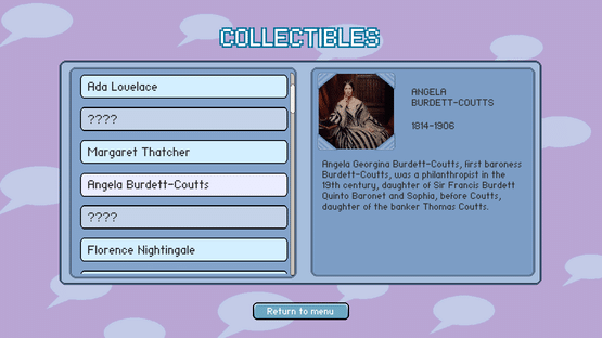 Women’s Quiz is a videogame with questions about the life and work of famous women. You could find more than 200 questions about 50 relevant women in history such as Marie Curie, Amelia Earhart or Virginia Woolf.