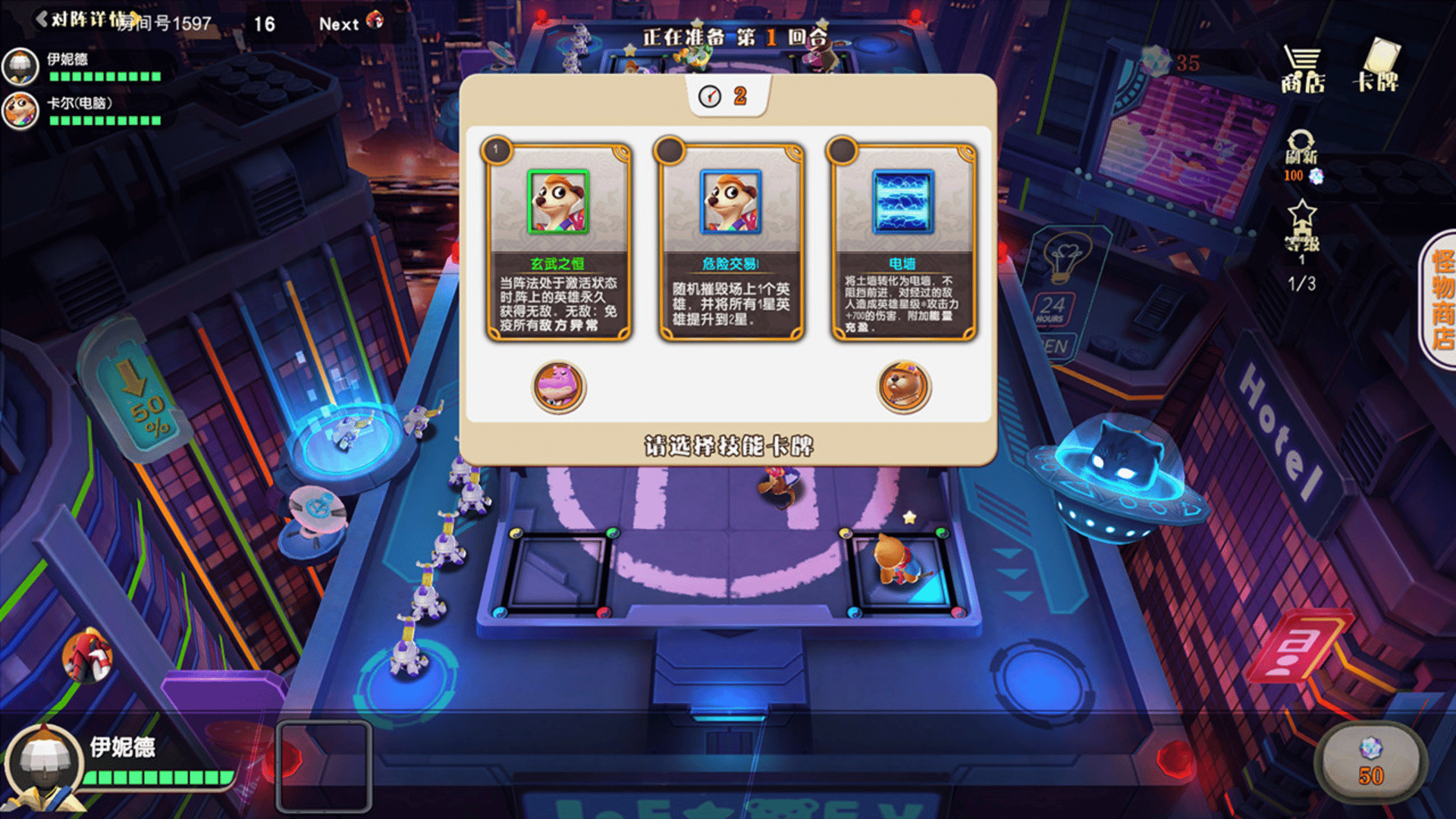 Animal Defense vs is a player versus strategy game. What's different about the game is that it's full of random elements, random teams of heroes, random summoning, random positions, random cards, random bosses, random items, all in a random "face" mode.