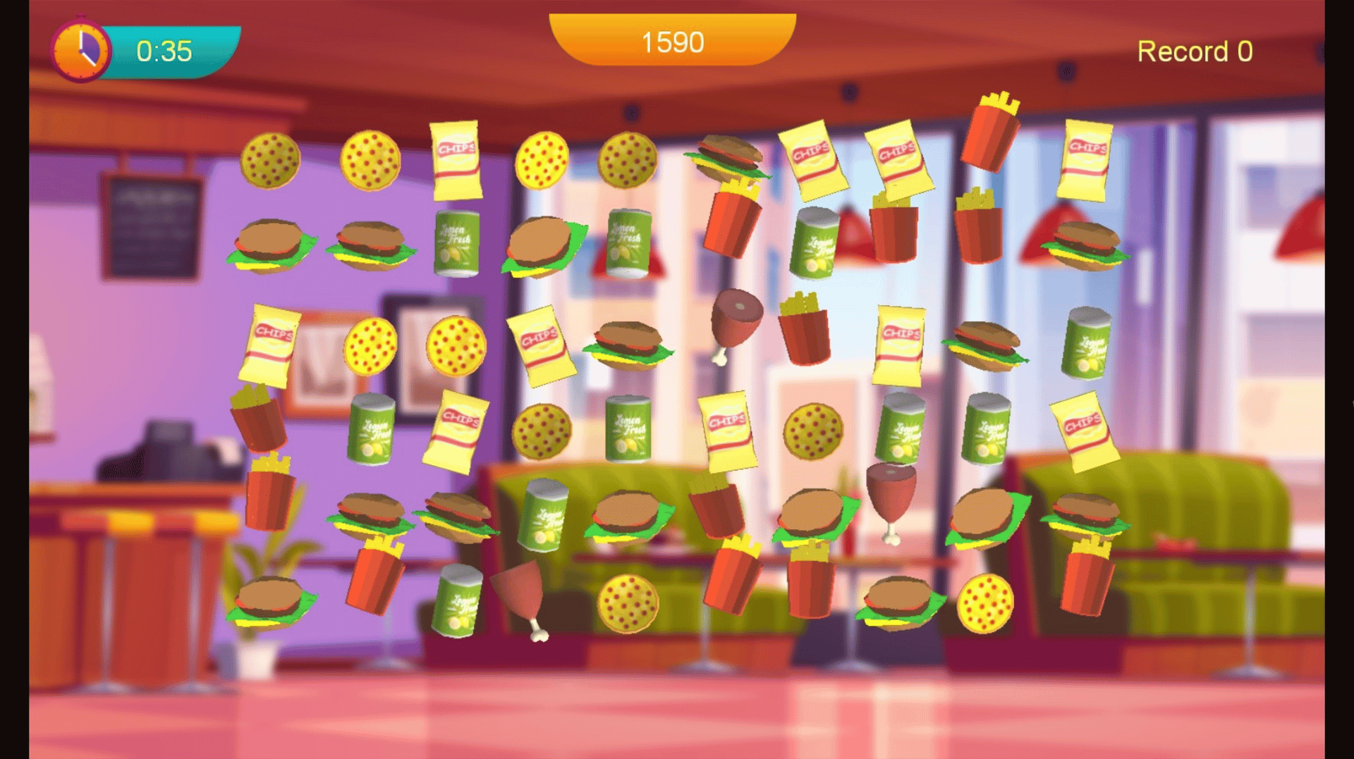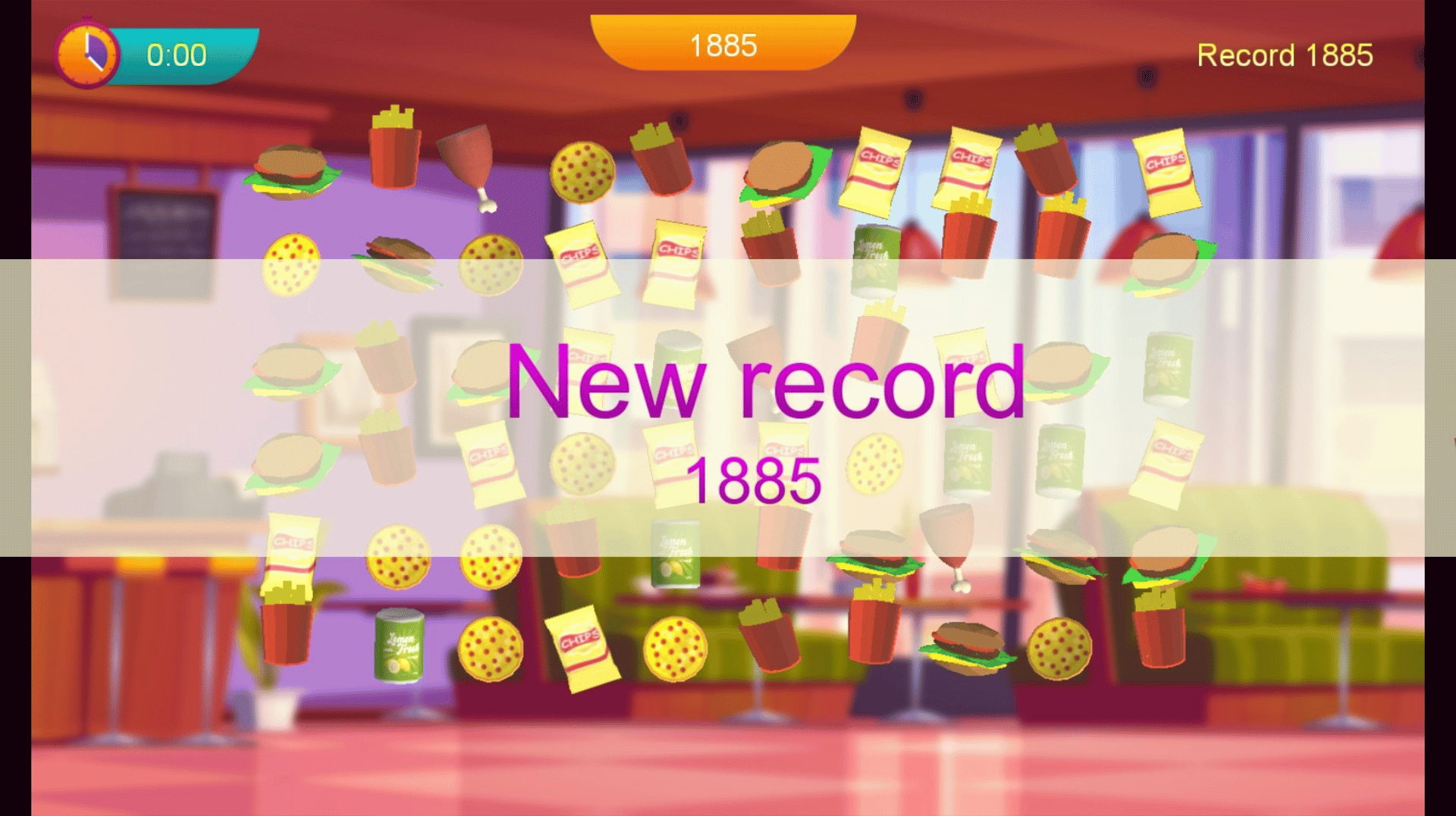 Fast Food Mania 3D - a game in the genre of three in a row with a set of glasses, made in 3D graphics.