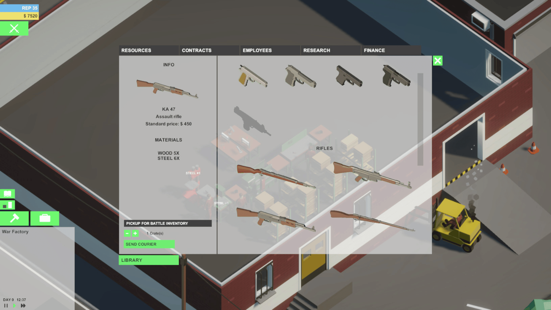 Build and manage your factory. Hire workers and buy machinery to produce weapons. Grow your reputation and brand whilst fighting an invasion force.