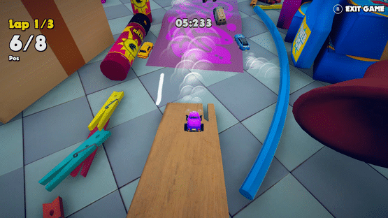 Pocket Races allows you to create a minicar race and test your racing skills at your own pace. This is a game where you can easily use your design skills to fully push your racing approach to the next level in a powerful and engaging manner. We are here to offer you access to some of the nicest and most immersive game worlds where you can create cool and fun races. Since Pocket Races has multiple environments to choose from like the kitchen, board games, sand pit or bathroom, you can easily use your imagination and create cool races. Then you can start and test your racing skills against your own time or other players. Check it out today if you want a unique way to create your own races and have fun testing them!