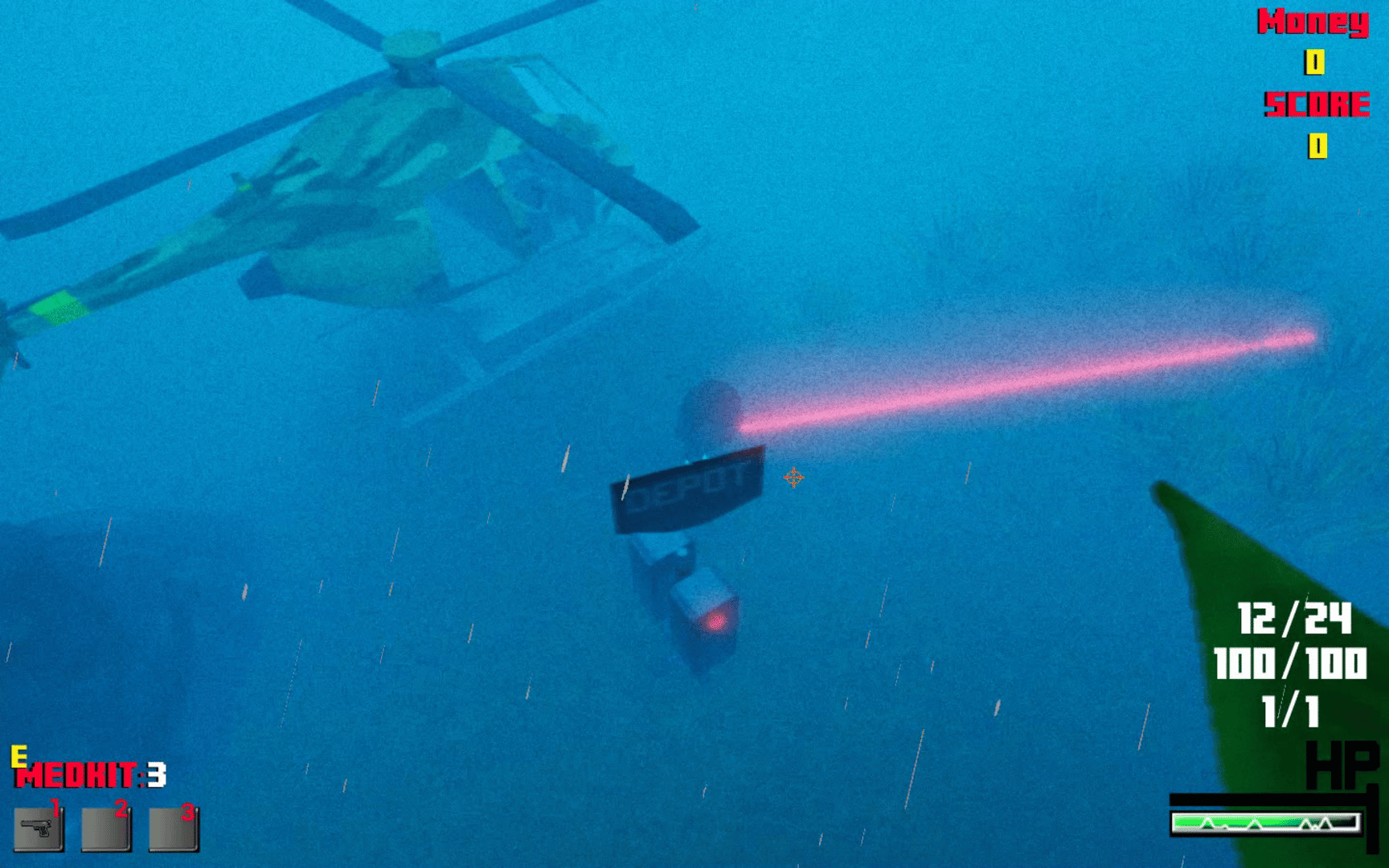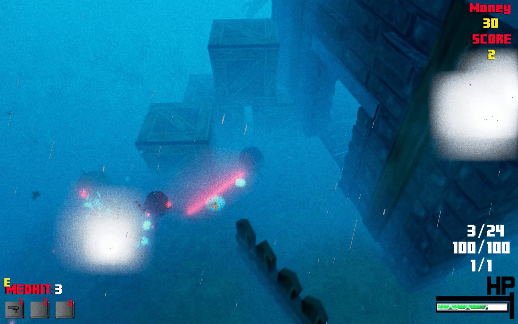 Now it's your turn to survive! Kill various zombies that come in waves at you. Collect points by killing zombies to get new Weapons, Bullets and Health kits.