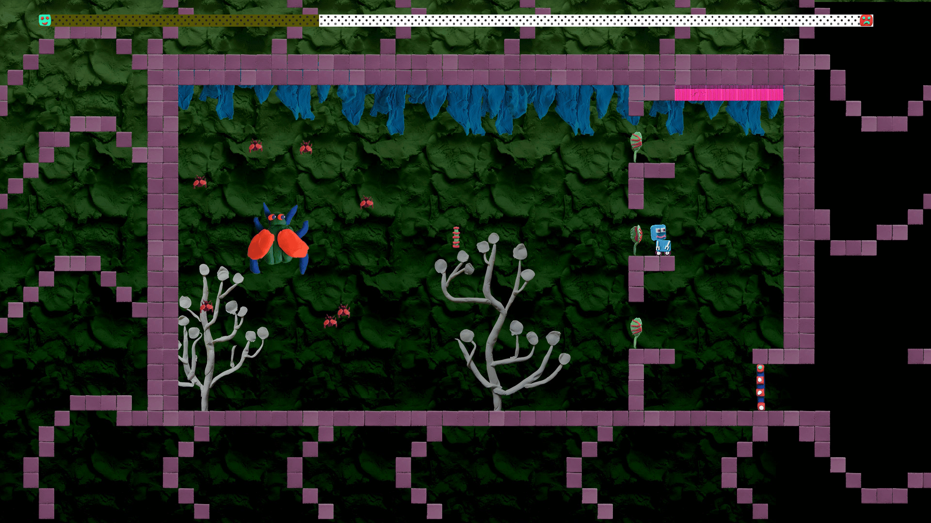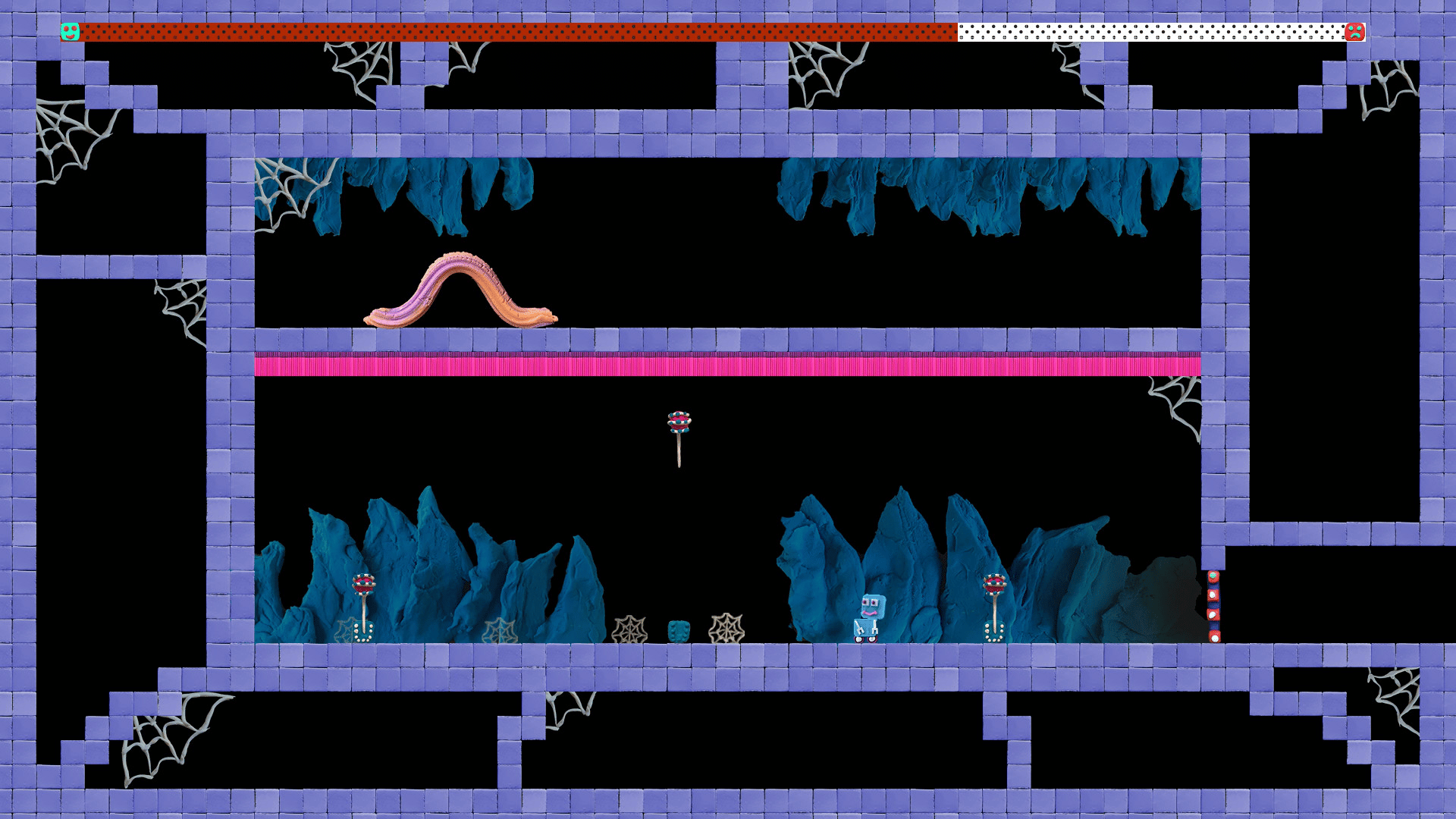 A 2D, platforming game with a telescoping robot and short, intense caves to explore. Use your robot Schmutznik to clean up slime in the underground realm. Reach higher platforms with your telescopic neck. Each of the 35 caves has a new mechanic or idea to experience. 99% of the art is made from colored clay.