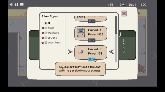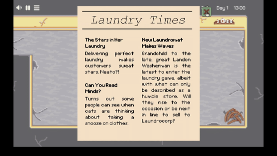 A point-and-click time-management game where cats rule. Manage your hectic laundromat and get your cat through law school to defeat Laundrocorp.