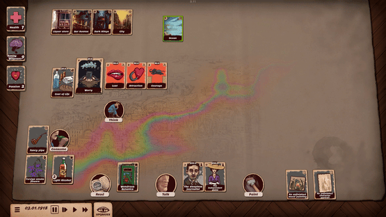 Live the life of (a starving) artist in 19th century alternative history. Collect and combine feelings, memories, ideas and inspirations, fight with depression, addiction or madness and other mental phenomenon. Paint masterpieces, sell them for riches (or scraps) and explore the city of Nova Oportunia. A unique card-based roguelite with 18 alternative endings.