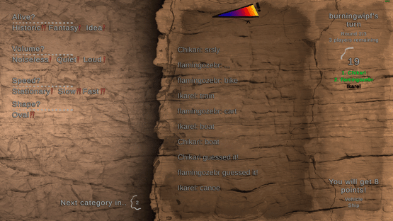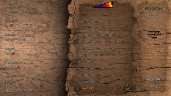 Cave Guessers is a casual word guessing game for 2-16 players. Every turn, one player gets a word. They then describe that word using abstract concepts, while the other players guess what the word could be! The faster someone guesses a word, the more points are rewarded!