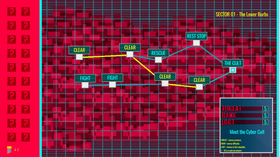 Cyber Cult City is a hoverboarding and hacking Cyberpunk roguelike focused on hit and run tactics.