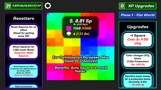 CompactO is an addicting idle game where you create colorful squares on a plane. Dominate the 3D Realm and infuse your planes into complex shapes to buy tons of upgrades!