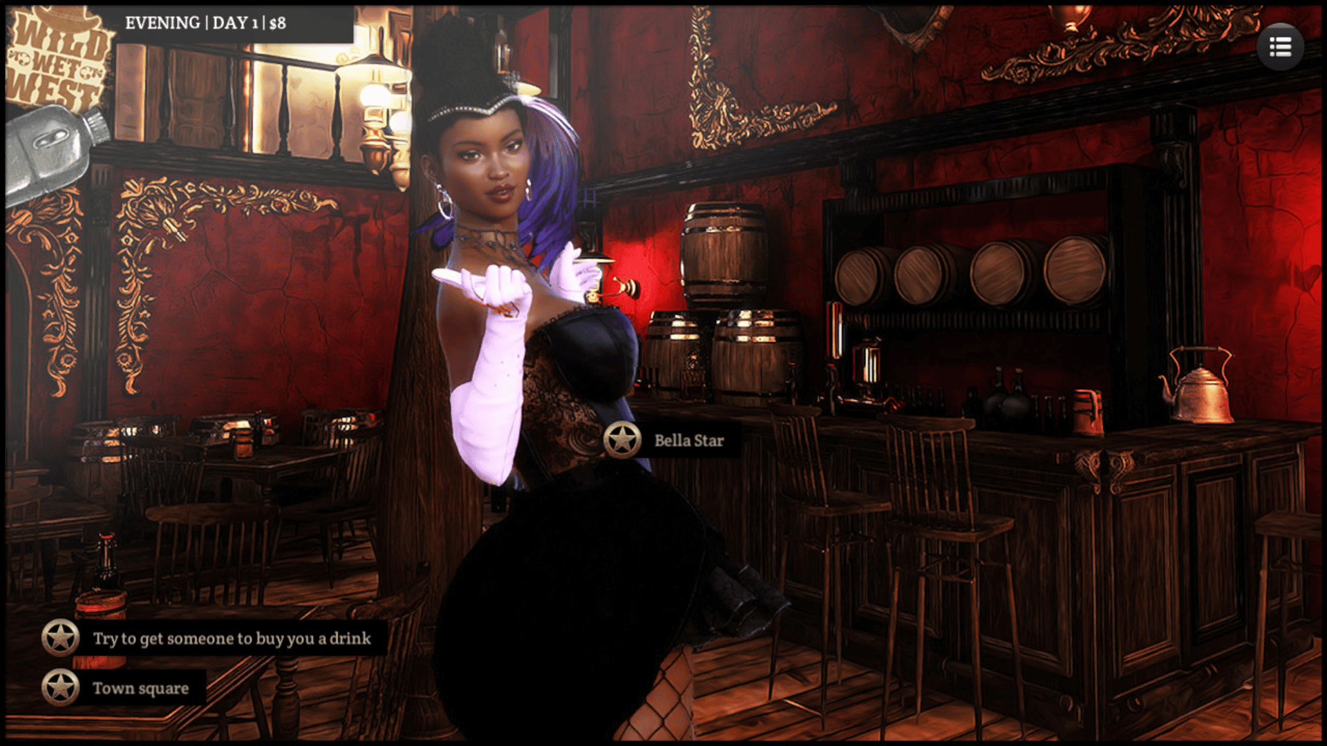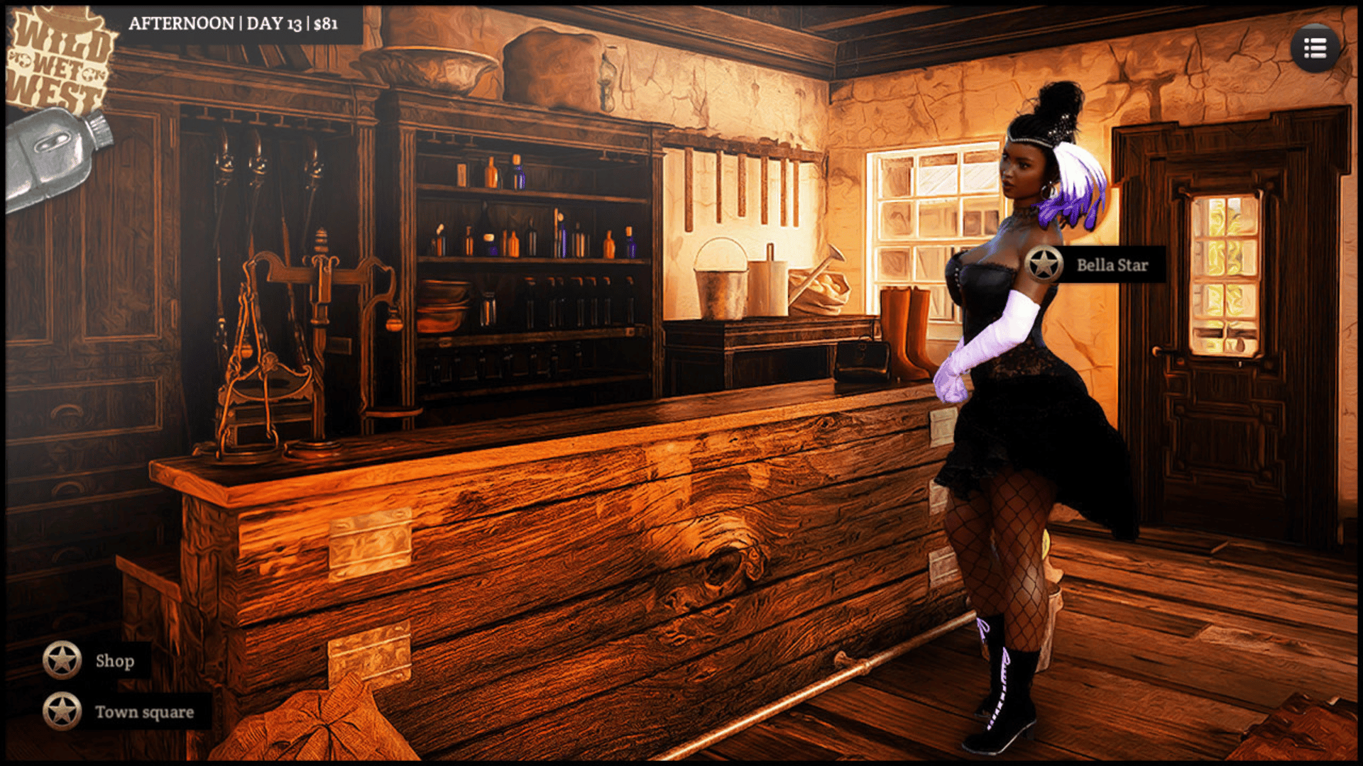 Wild Wet West - simplified dating sim with 3 charismatic girls to follow: local sheriff, dancer and innocent girl from Indian village. Your goal is to rob the bank - with or without help of those ladies.