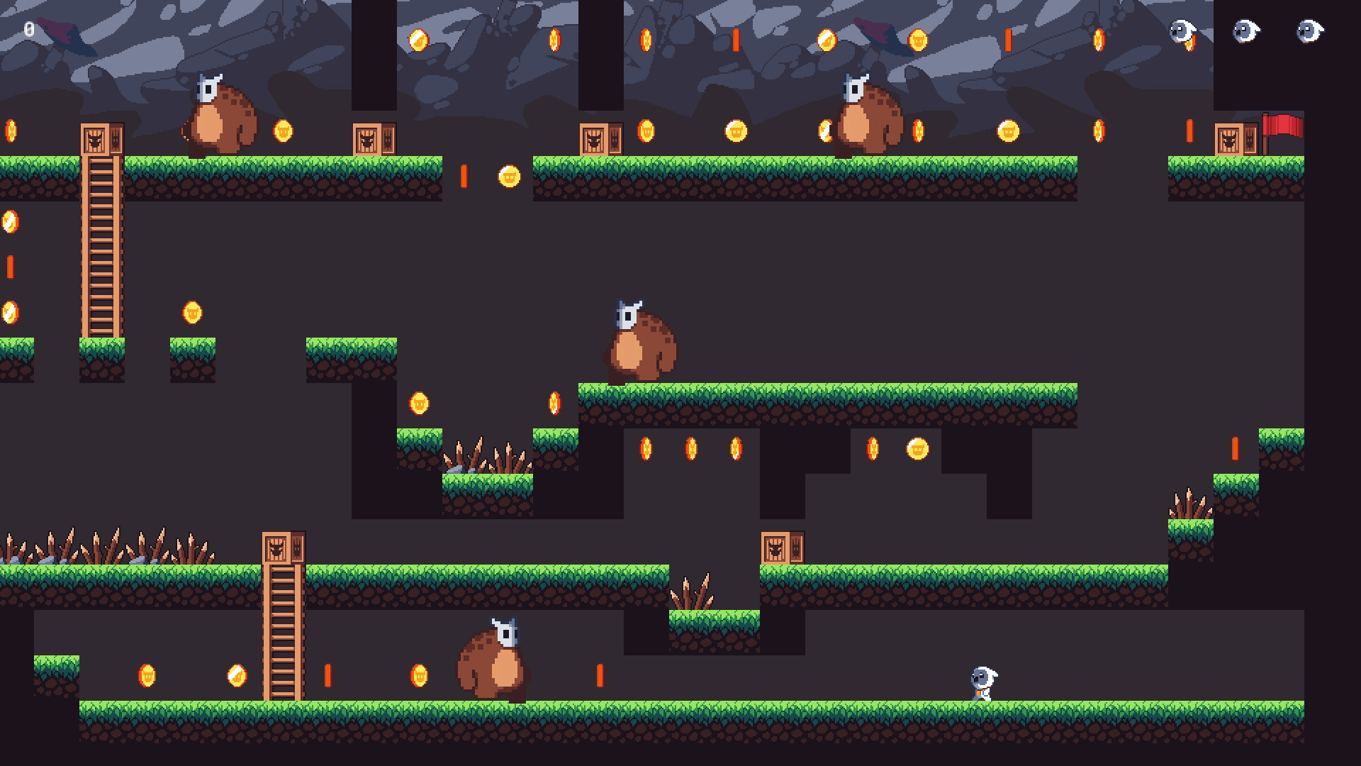 Rogues Adventure is a puzzle platformer adventure game. Each level has a lot of coins, and there are obstacles that are destroyed when you collect the required amount of coins, and then you can go through the level further. Further on the levels, enemy characters appear, which, like obstacles, prevent your hero from advancing along the level. And also there are various traps and other things that can both interfere and help your character.