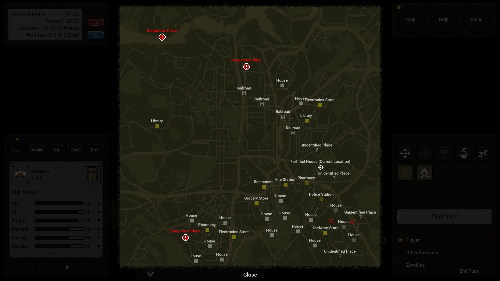 Terminus: Zombie Survivors is a 2D turn-based survival roguelike set during a zombie apocalypse. Each journey is unique, and every decision can mean the difference between life and death. Can you brave hunger, cold and the undead in order to reach the Terminus and find salvation?
