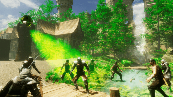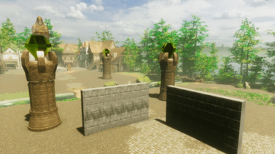 This is a Sandbox + Moba Third-Person Game, Players 2 vs 2 compete with each other; Players can create flame towers , city walls and soldiers on the map and You can kill enemy merchants so that enemy players can't buy items.
