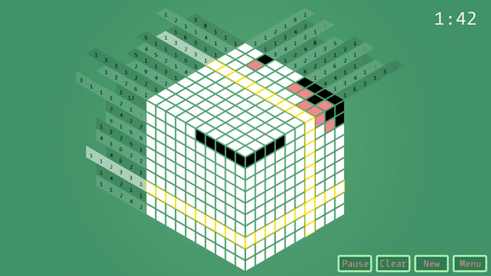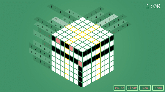 Isometric version of classic nonograms. 3 visible sides of the cube are not independent. They are making common rows and columns with each other and it brings a fresh new feeling to the famous game.