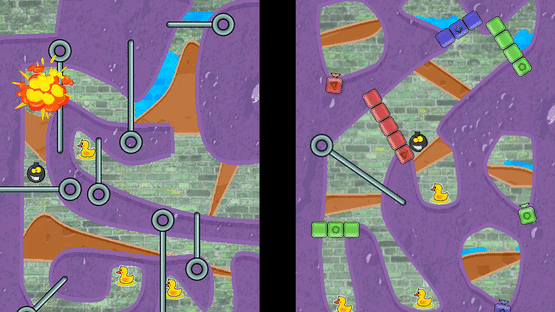 Logic game (puzzle) - collect bonuses in the form of yellow ducks. Use bombs and rockets to make passages. You will need to think about it.