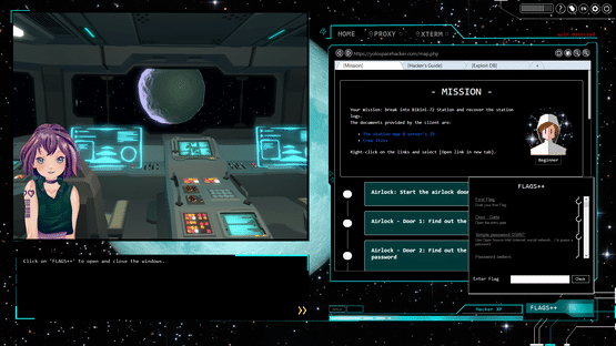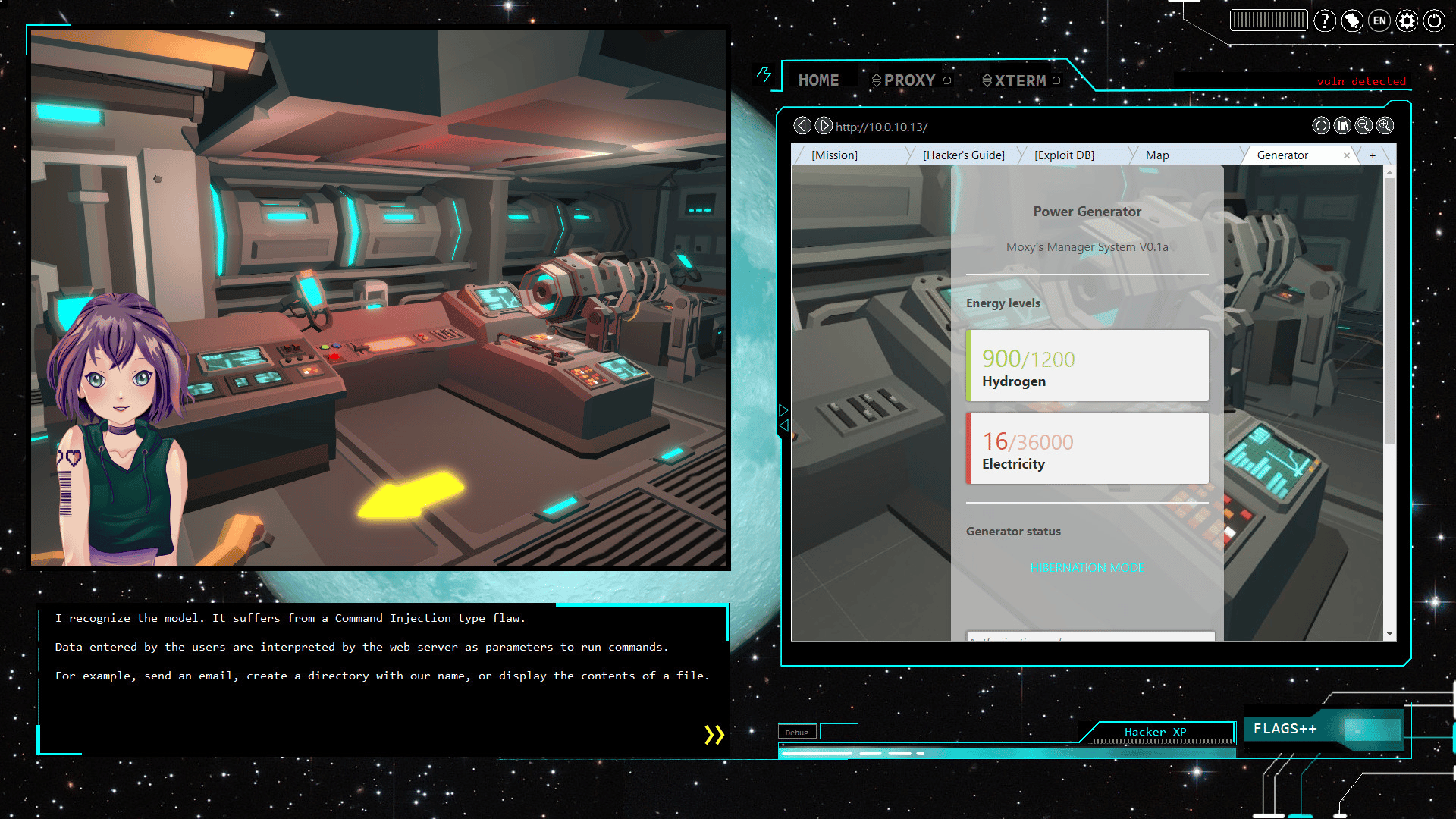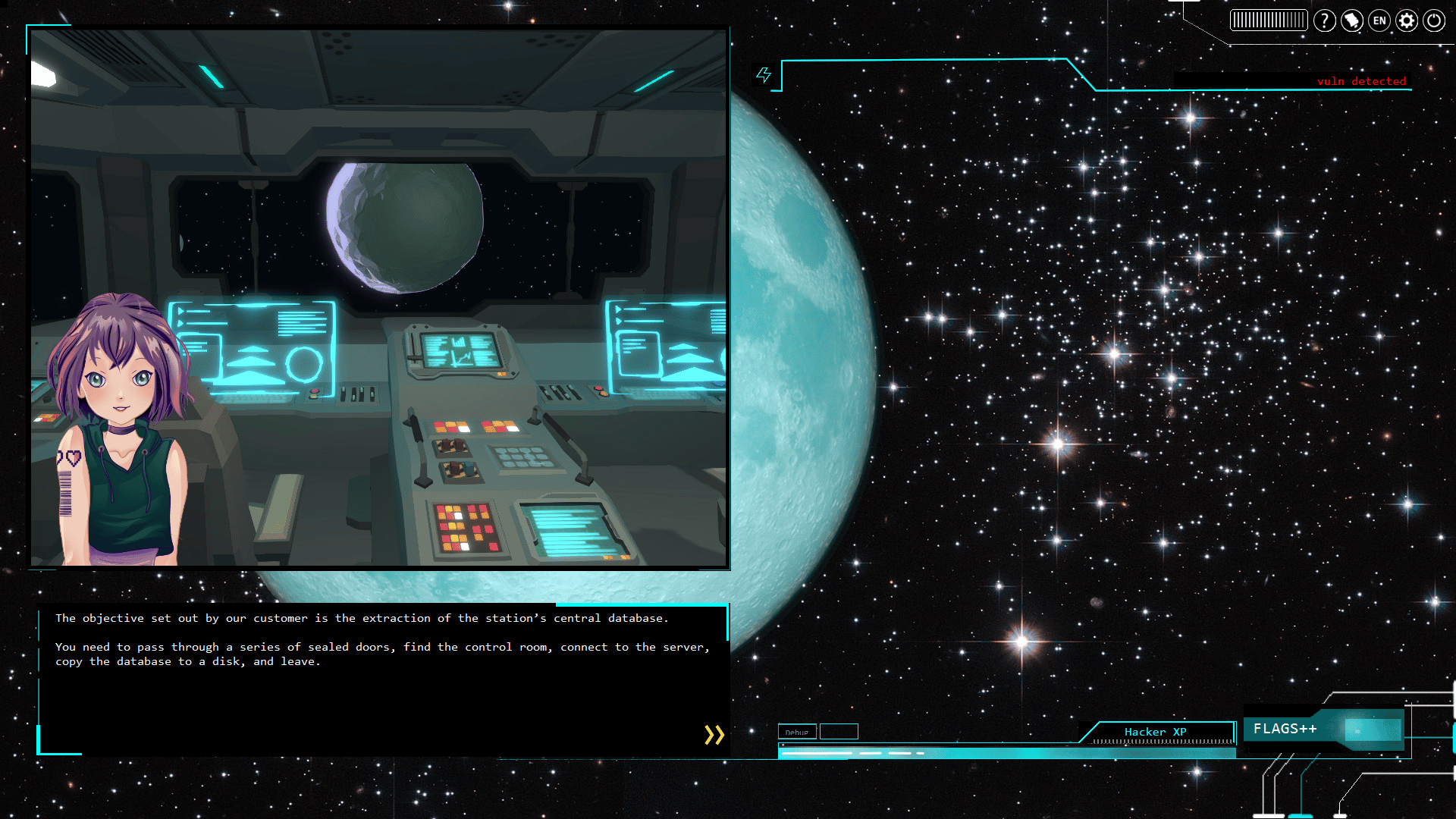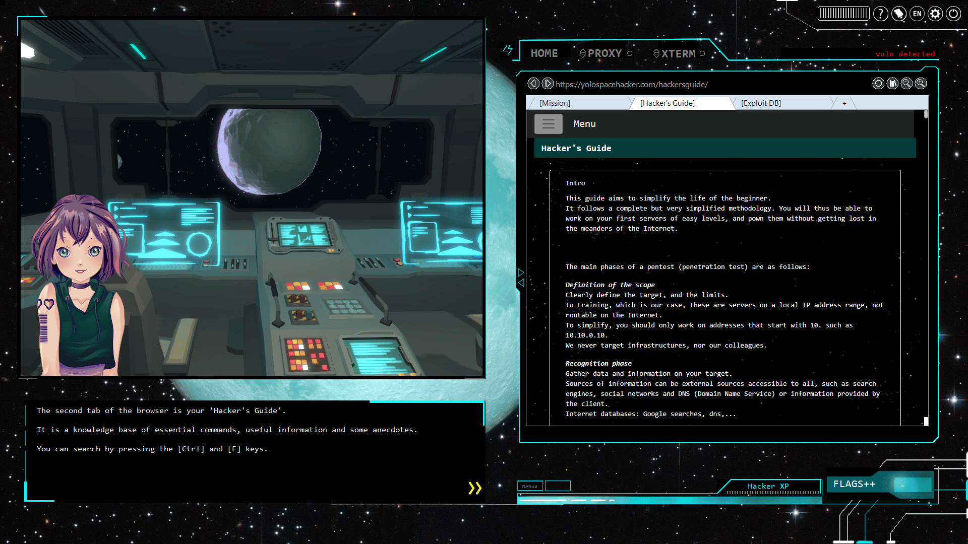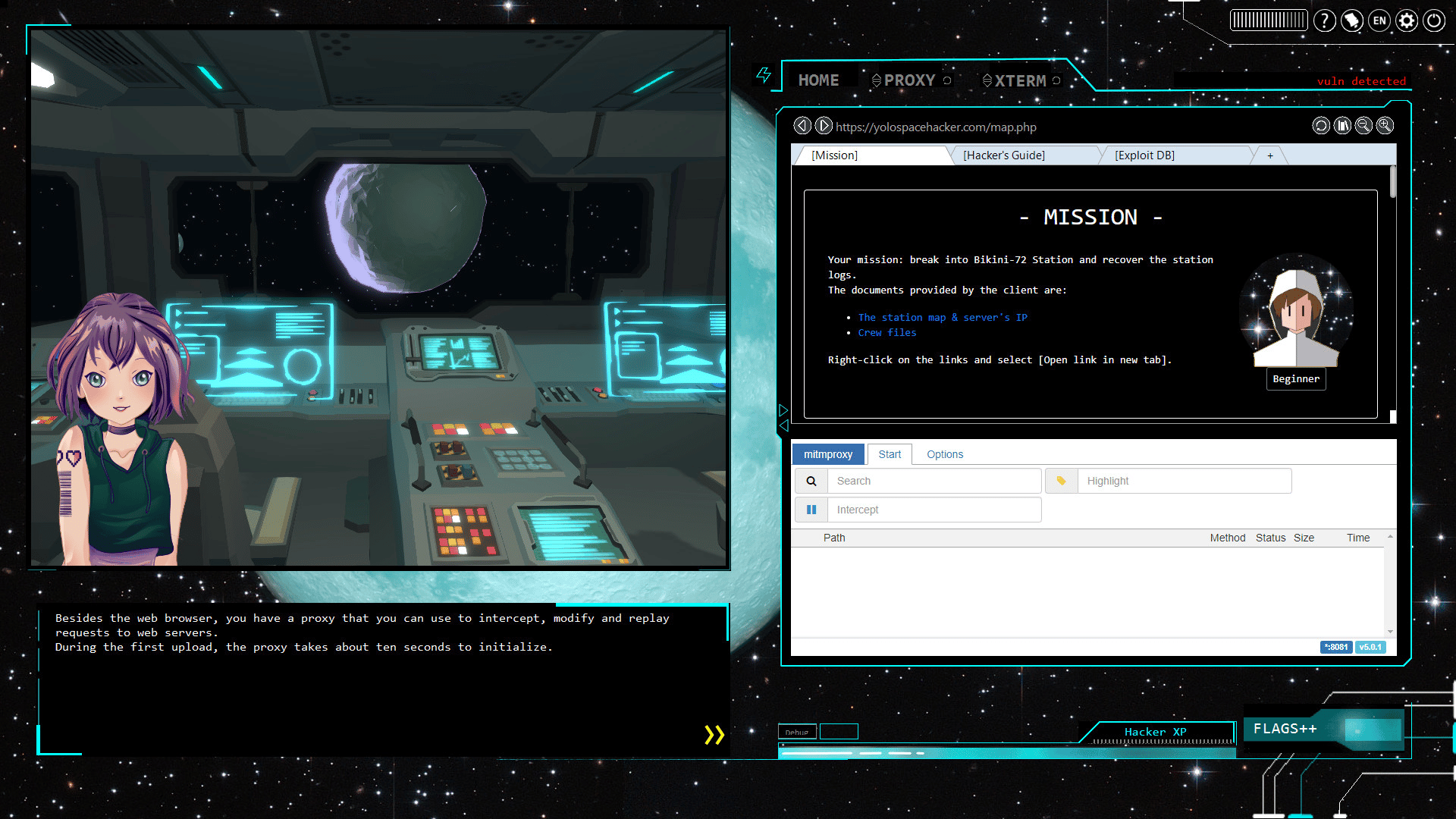 Welcome to our ethical hacker's organisation: we will teach you how to use actual hacker tools (terminal, proxy, reverse shells...) to scan the network, crack passwords, bypass server security and solve the mystery of the Bikini-72 space station.