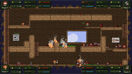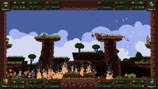 4 player chaotic single screen battle arena, with multiple game modes, items, and quirky mechanics. Regurgitate what you eat onto opponents with various status effects depending on what you consumed. Burn it all to the ground!