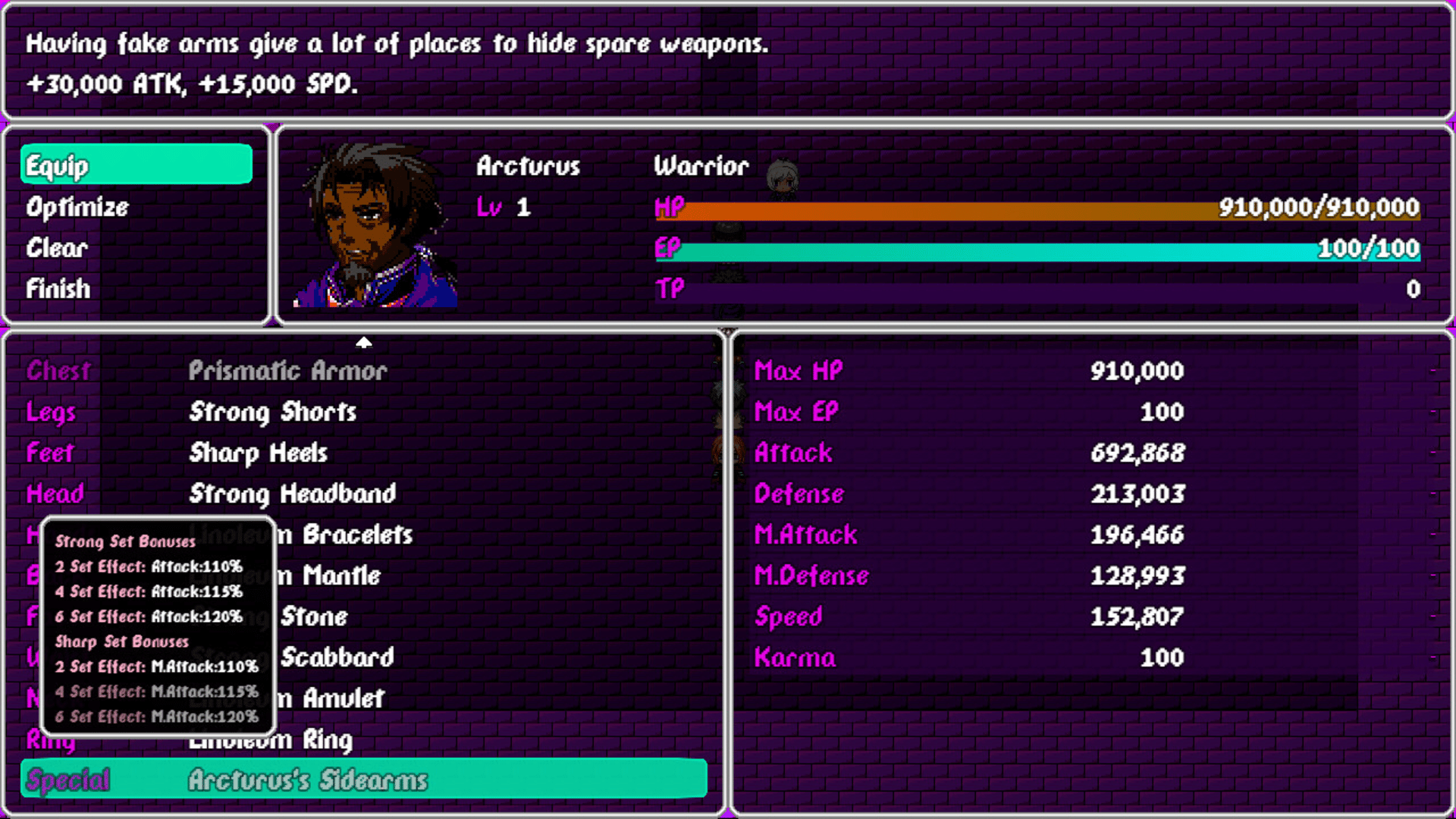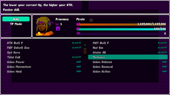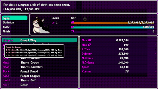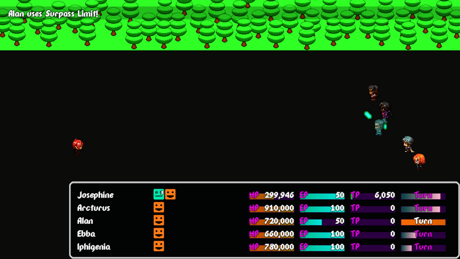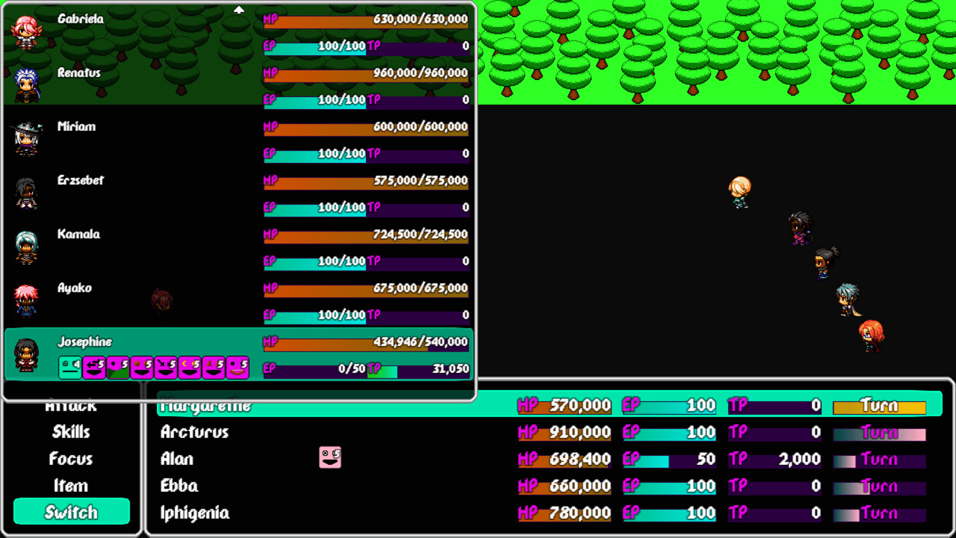 A masochist RPG inspired by kaizo games. There is no randomness. Plan perfectly for the enemy at hand, swap out your 99 party members flawlessly, and manage the party's equipment down to the smallest stat - or wipe.