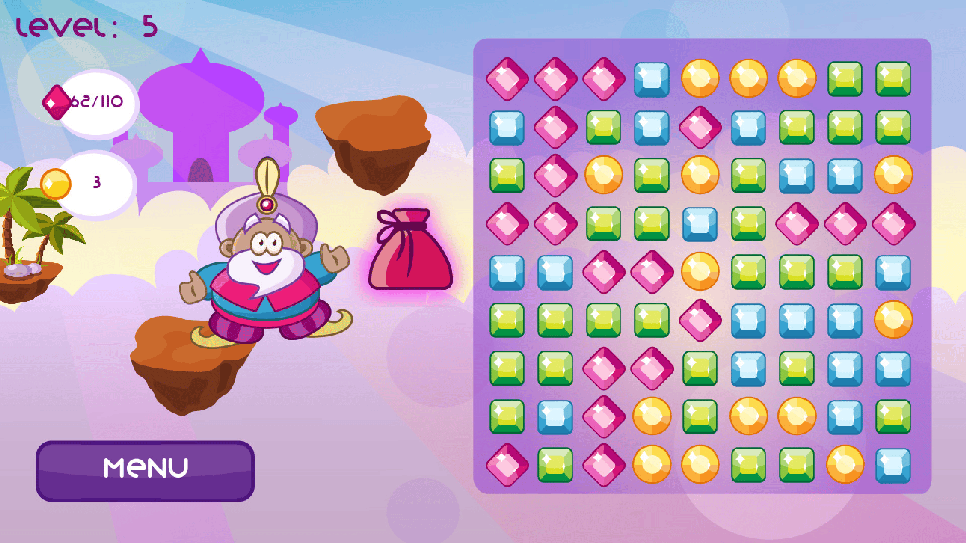 Magic gems game is an unusual game for fans of the genre "three in a row", in which you have to break a combo of gems on your own to complete the level.