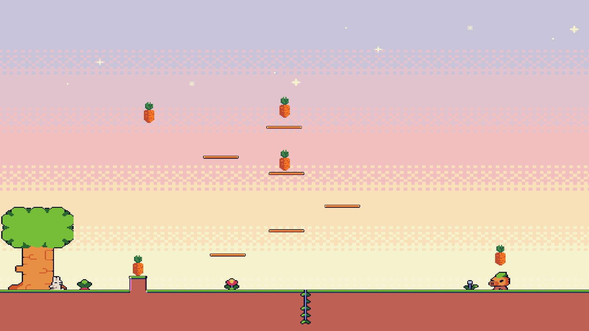 Hungry rabbit - A bright platformer about a hungry rabbit who seeks to collect all the carrots scattered across numerous levels to satisfy his hunger.