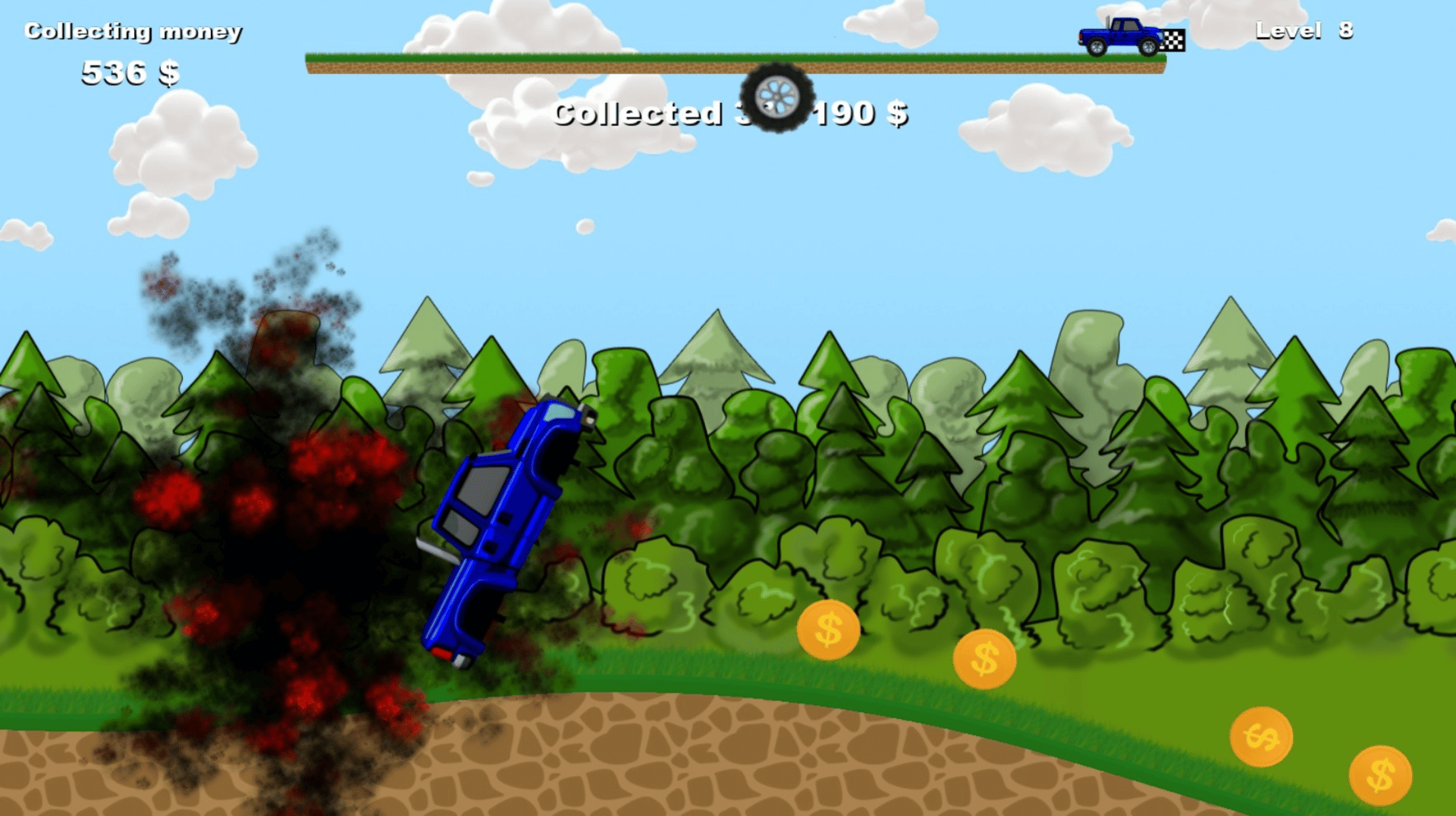 TOP TRUCK DRIVER - a car simulator with a side view, made in 2D hand-drawn graphics.