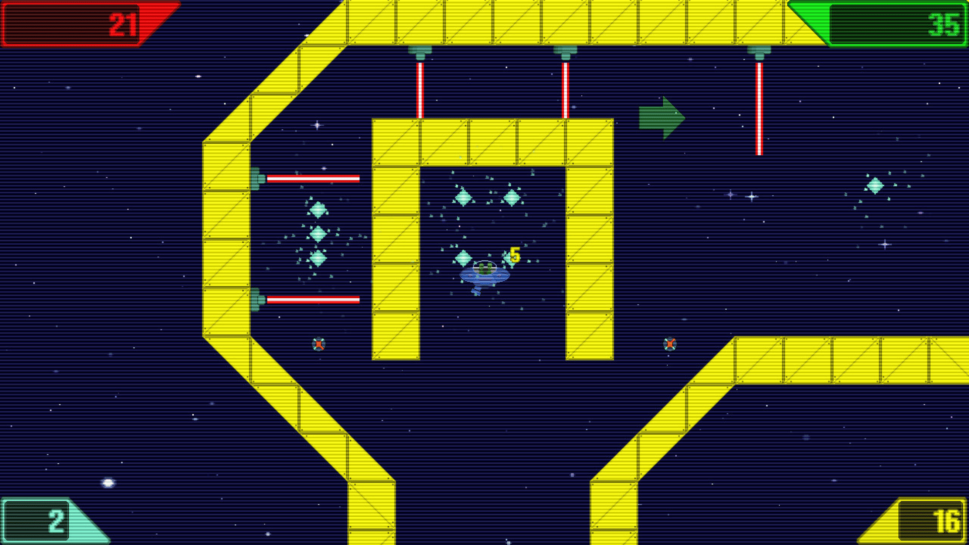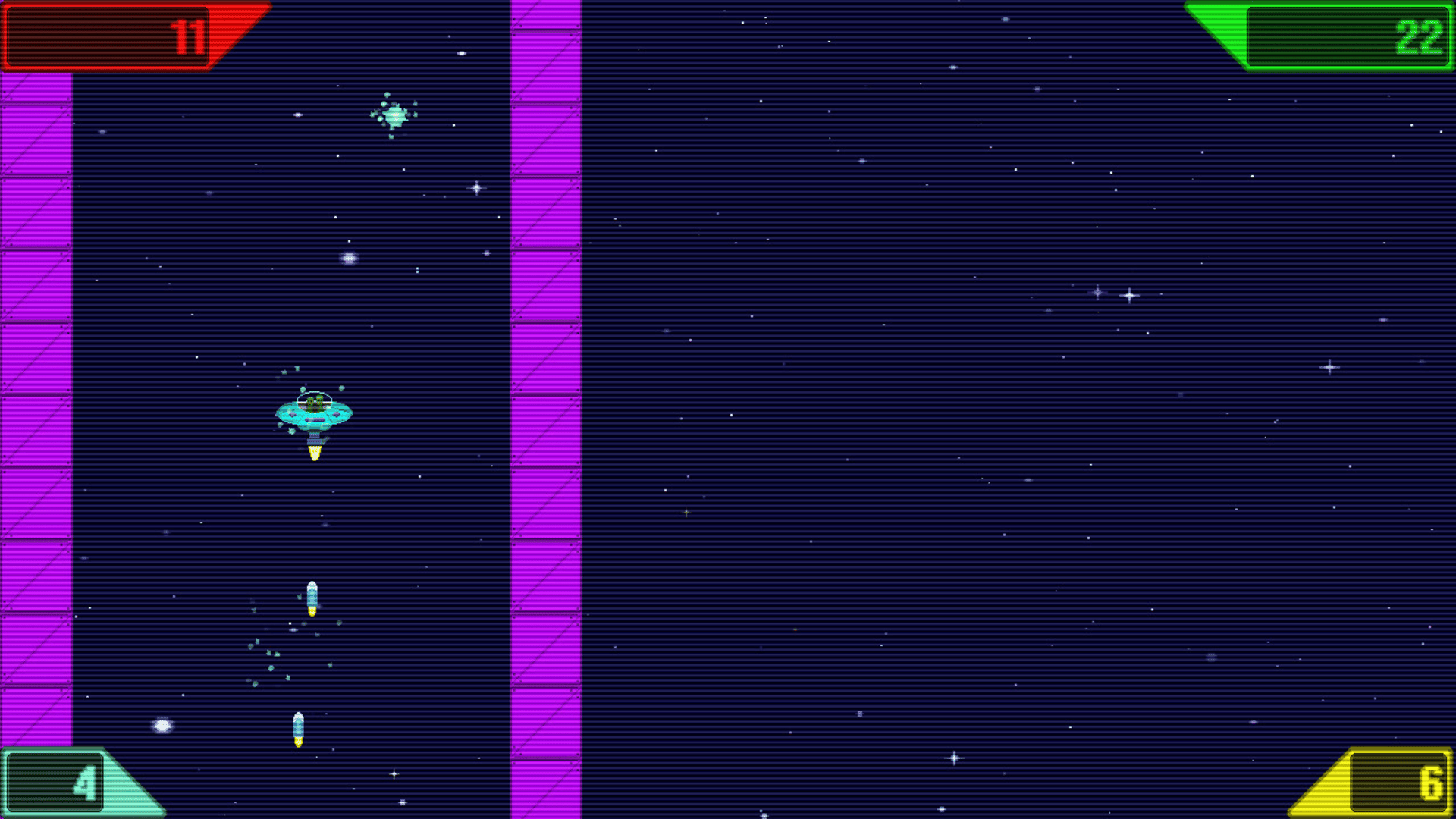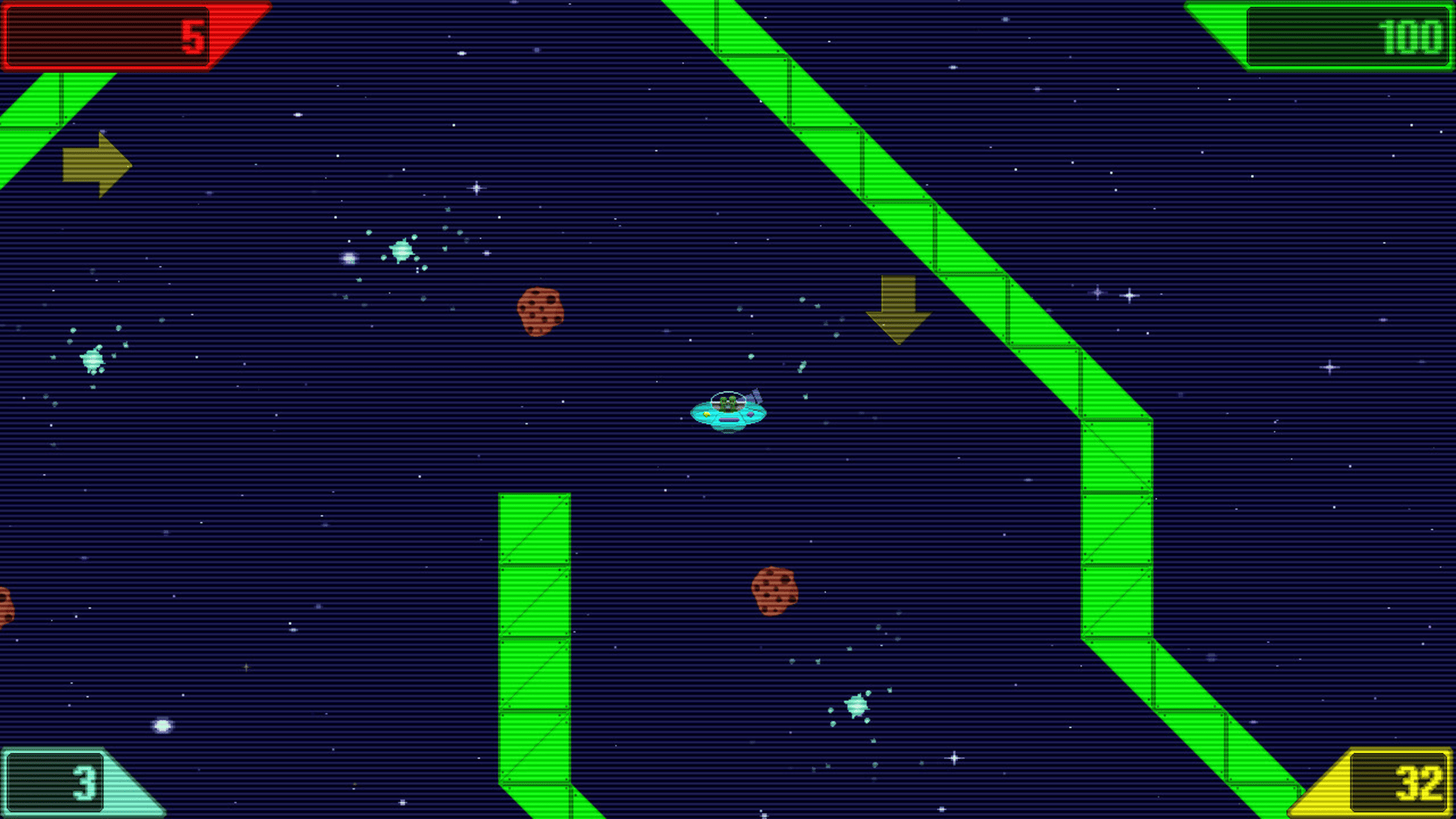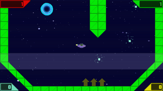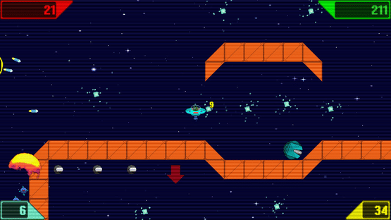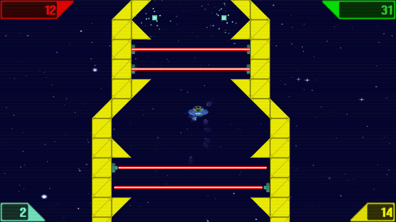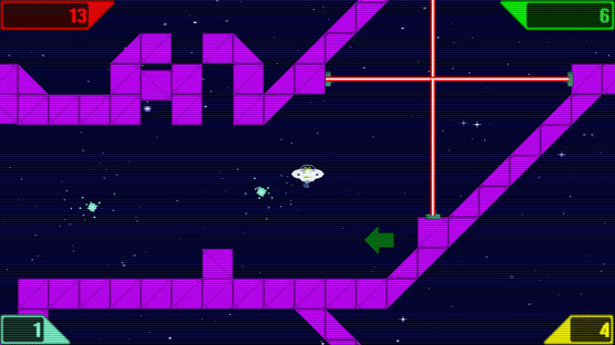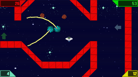 A colourful retro physics game for causal and pro gamers alike. Whizzing round the cosmos in your flying saucer dodging asteroids, black holes, cannon fire & assorted obstacles picking up crystals. Thrusting, dodging & speeding through the 30 obstacle filled levels.