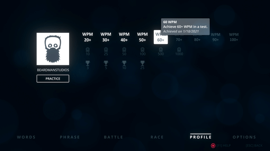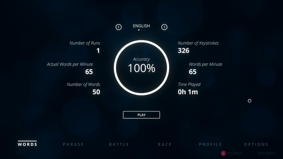 A simple typing experience to complement your keyboard. Typed'82 immerses you in an atmospheric typing experience. As you progress and improve your typing skills, the visuals and music set a pleasing environment.