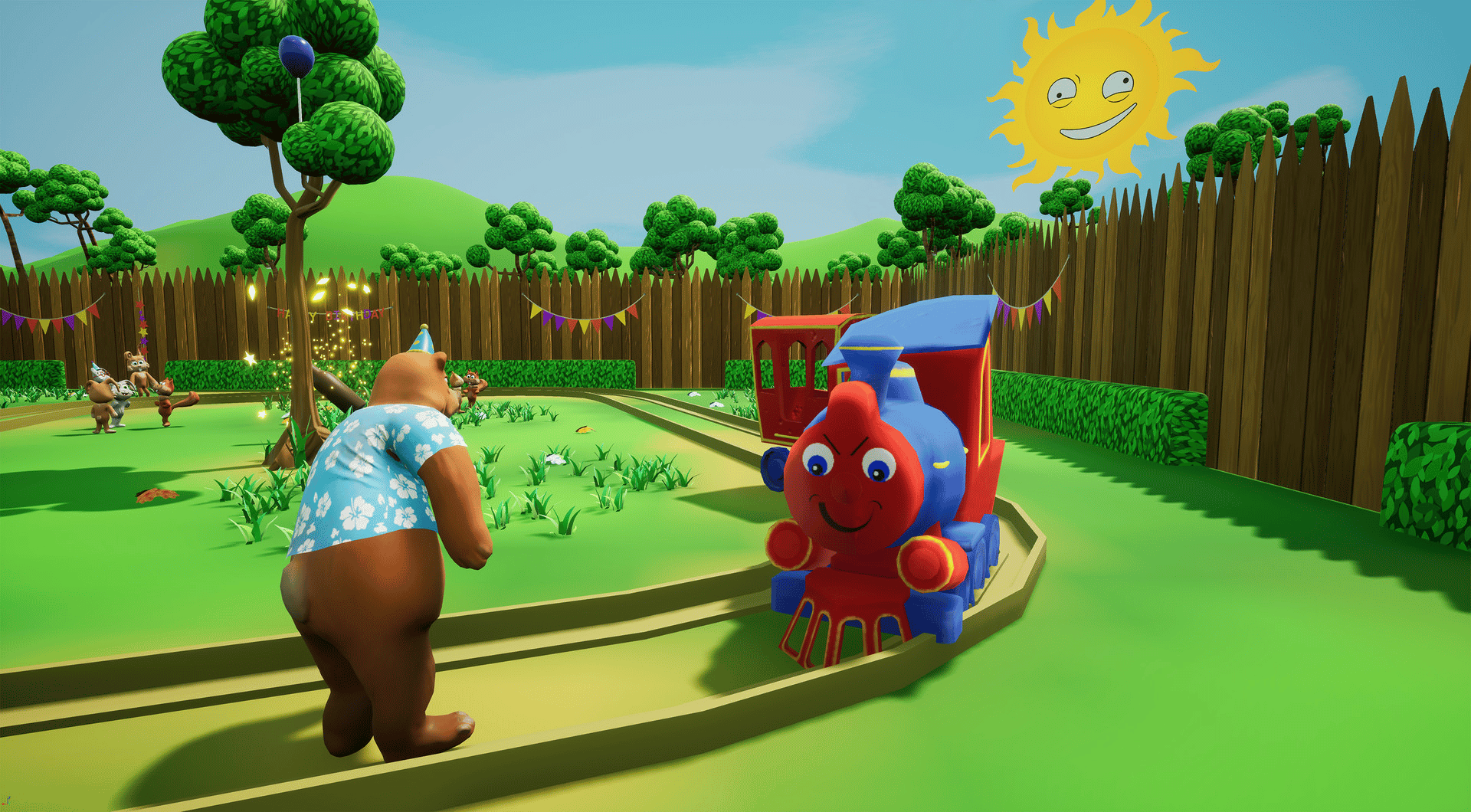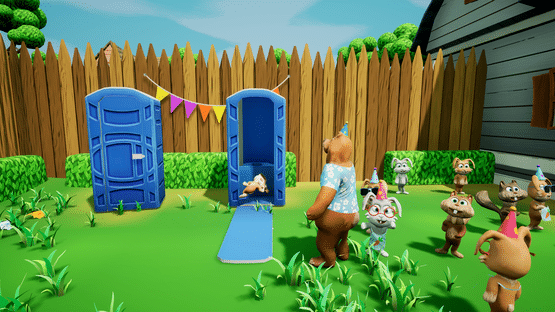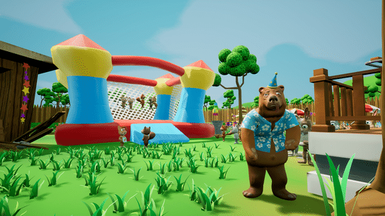 In Drunken Dad Simulator you'll play a drunken bear who has to look for his beer bottles at a child's birthday party. In the process he causes a lot of mayhem and all sorts of strange things happen.